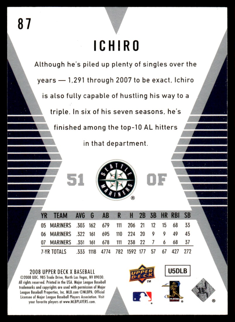 | 2008 Upper Deck X Baseball Ichiro Suzuki Seattle Mariners #87 |