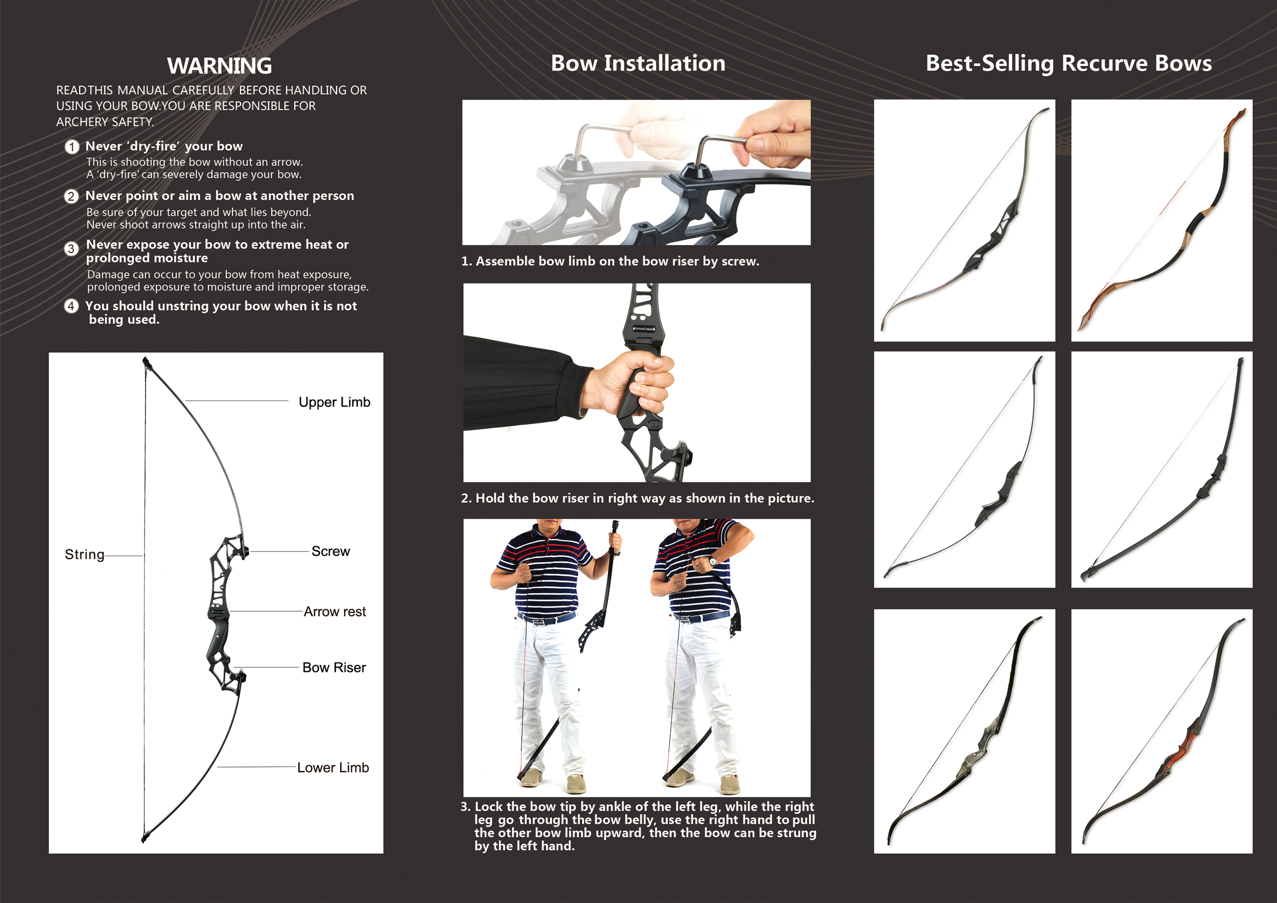 Zuggewicht: 20/30/40/55lbs Bogengewicht: ca. 1200g Sehne: 135cm/53 Zoll Bogen Datei: 18.5cm/7 Zoll Auszugslänge: 28 Zoll Material der Bogenschenkel: Import S-Klasse Glasfaser Blatt Paket einschließlich: 1x Bogen Tragegurt, 2 x Bogengliedmaßen, 1 x Visier, 1 x Pfeilauflage, 1 x Bogensehne Eigenschaften: