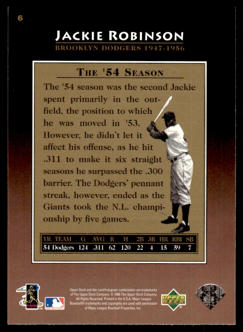 | 1997 Upper Deck Baseball Jackie Robinson Brooklyn Dodgers #6 |