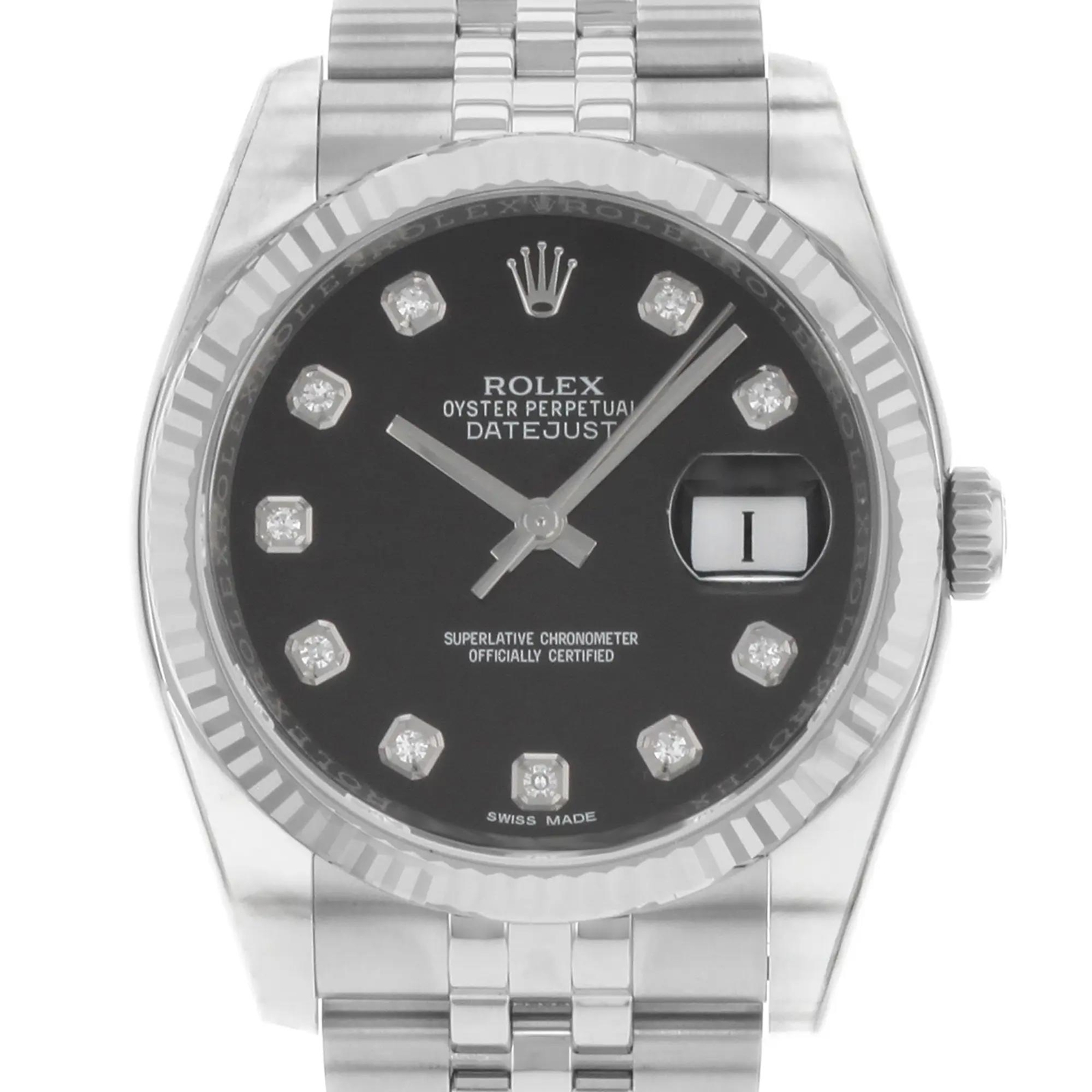 Rolex Datejust 18K White Gold Steel Black Diamond Dial Automatic Watch 116234