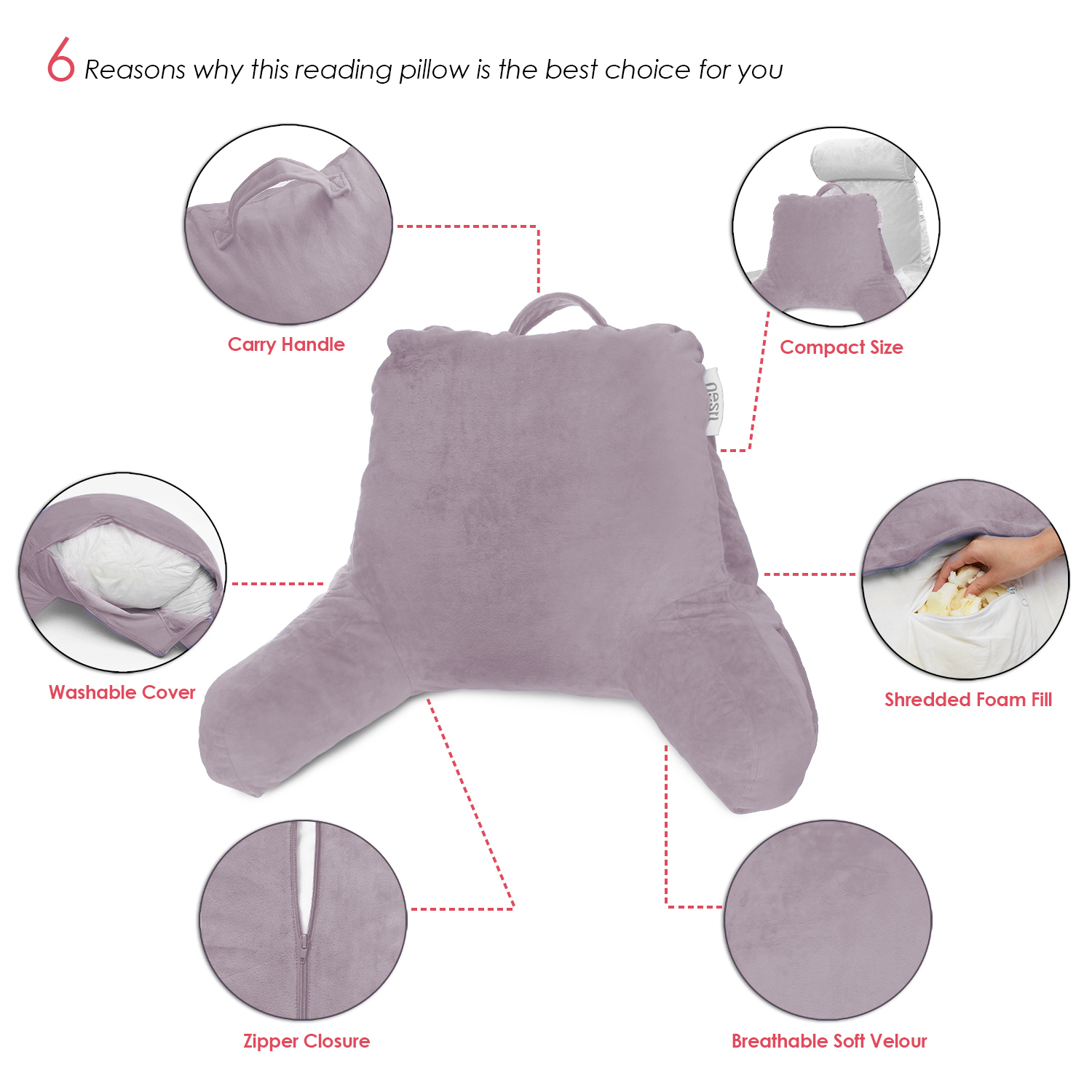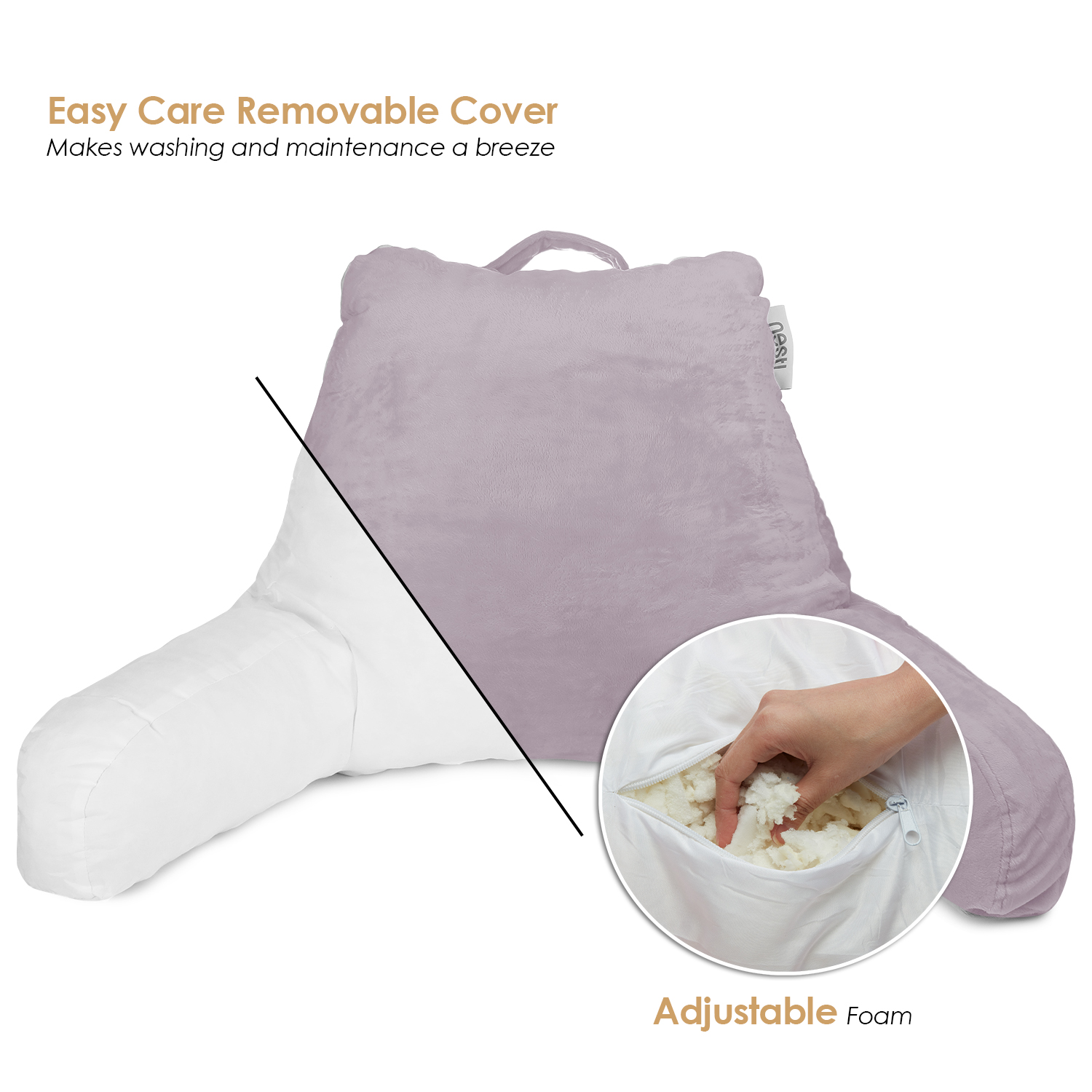 EASY CARY AND ADJUSTABLE: Easily carry the reading pillow to another room with the convenient carrying handle. A zipper on the inner shell of the reading pillow allows you to remove or shift around the foam clusters for truly individualized comfort."