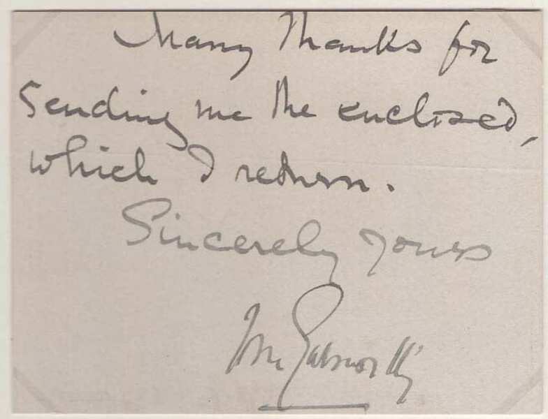 "Many thanks for sending me the enclosed, which I return.