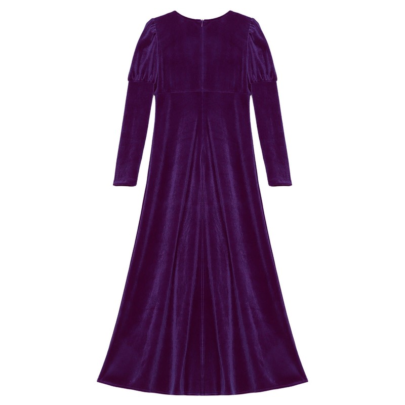 This long velvet dress is decorated with golden flowers around neck, and golden retro royal style pattern.