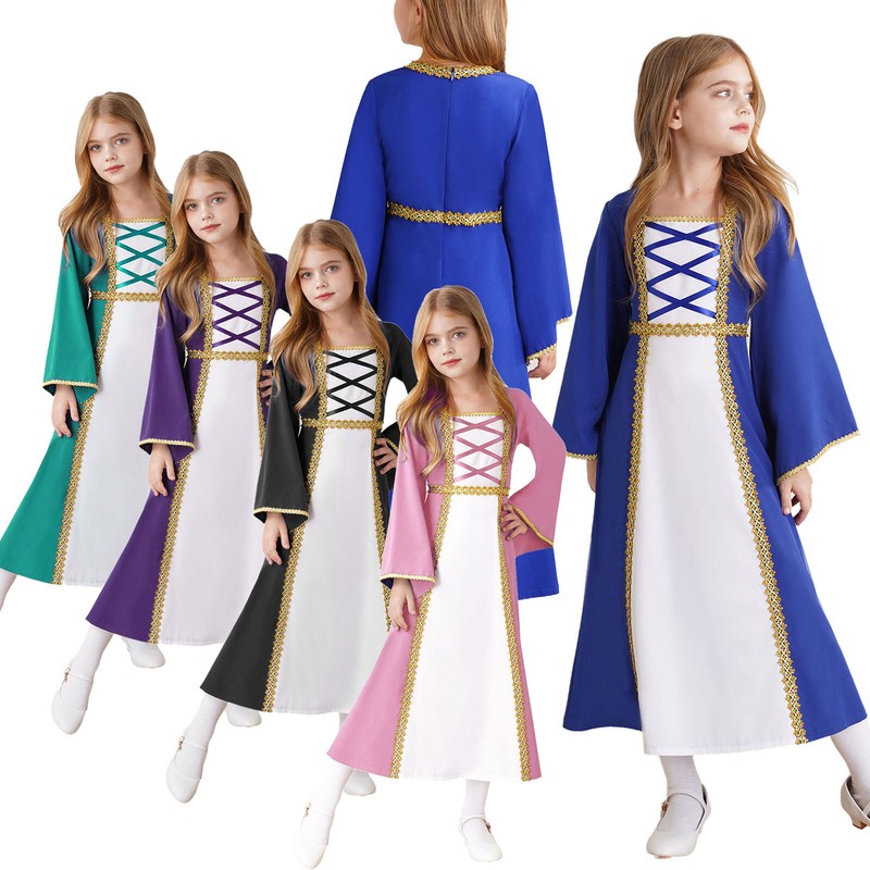 A renaissance dress for girls, adopts ancient roman costume style, suitable for vintage cosplay.