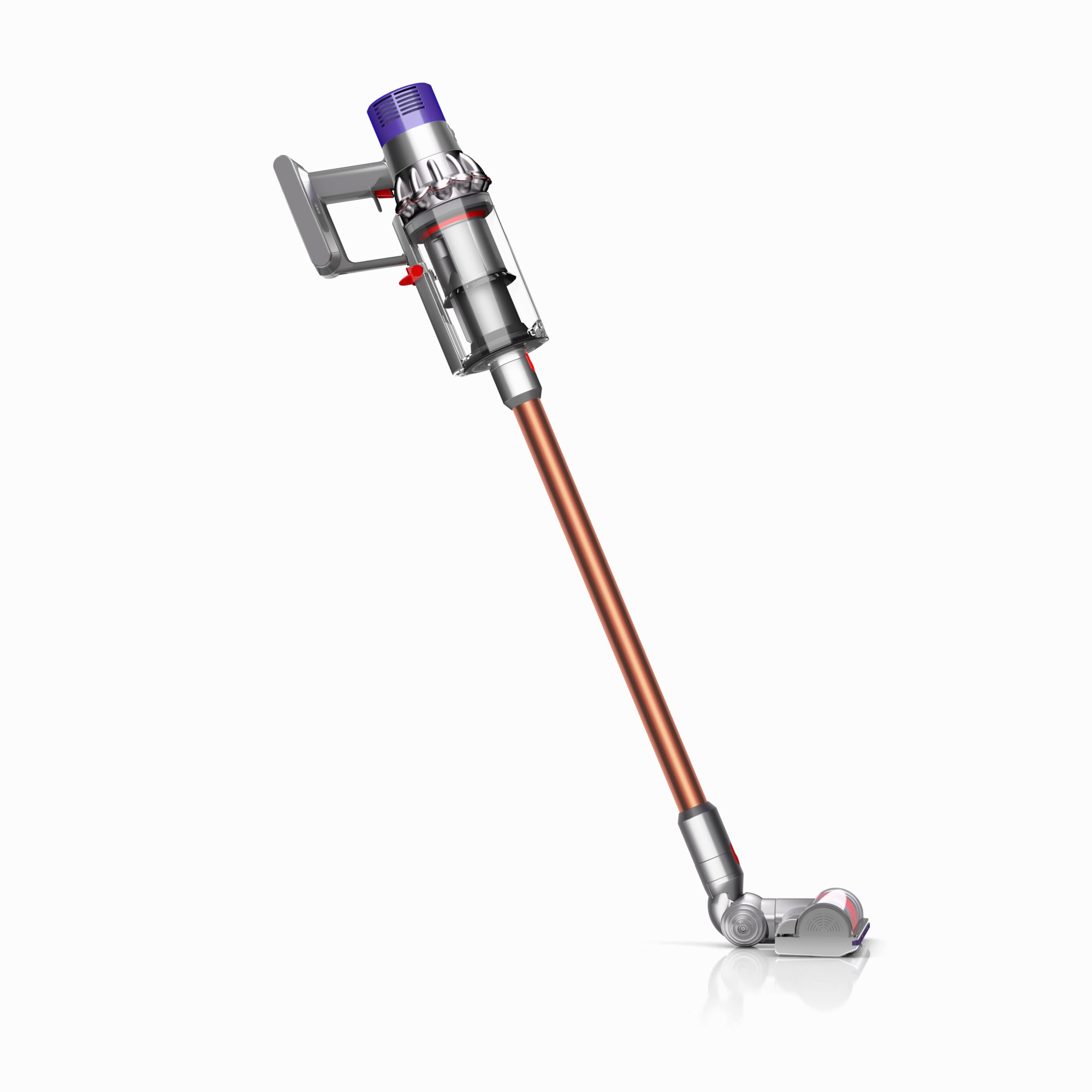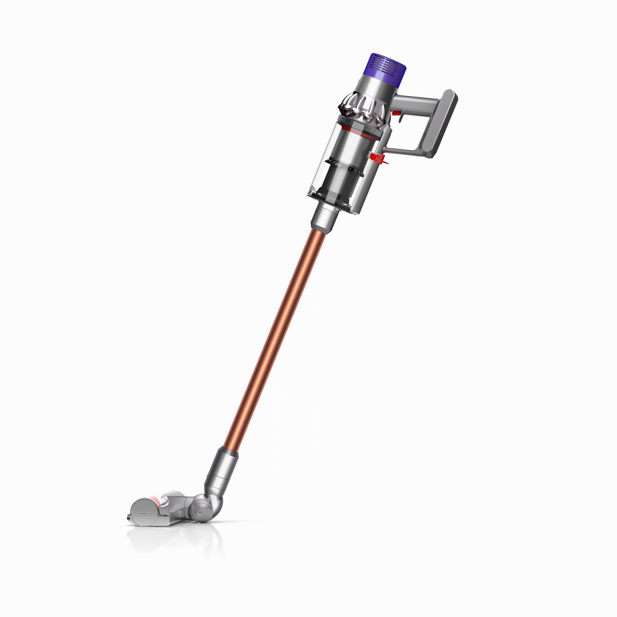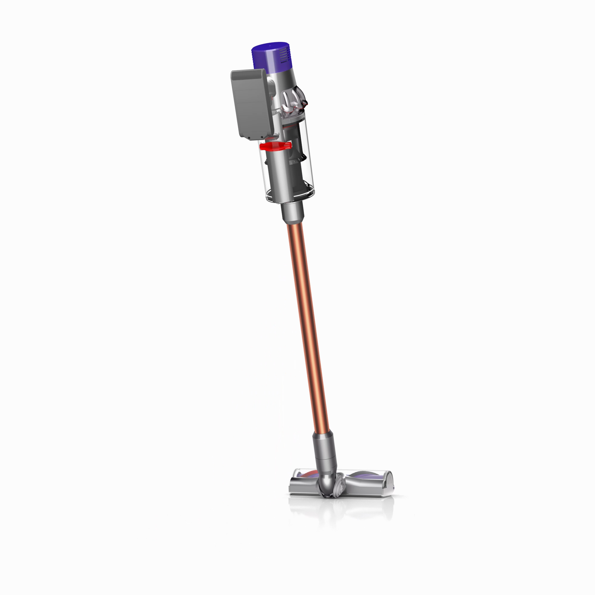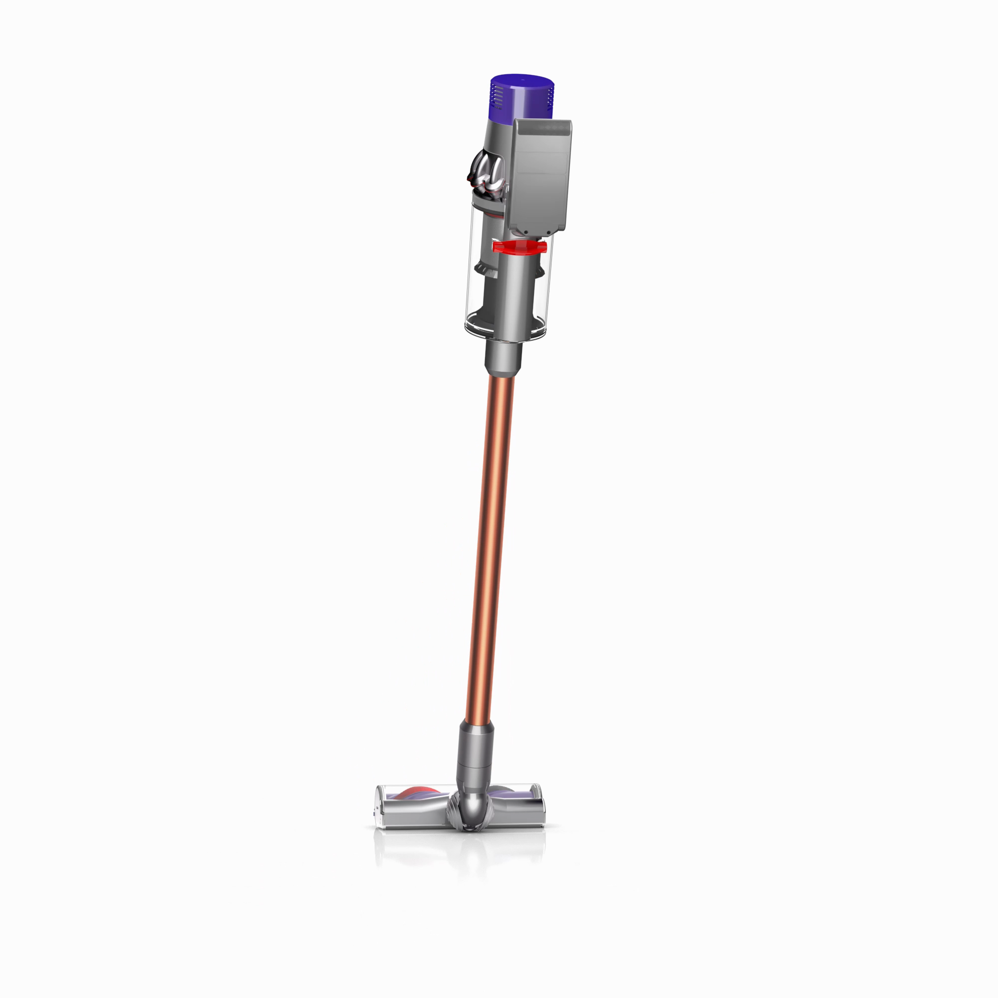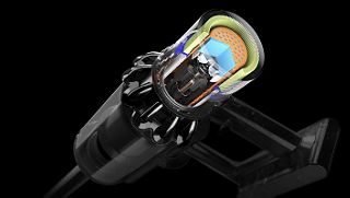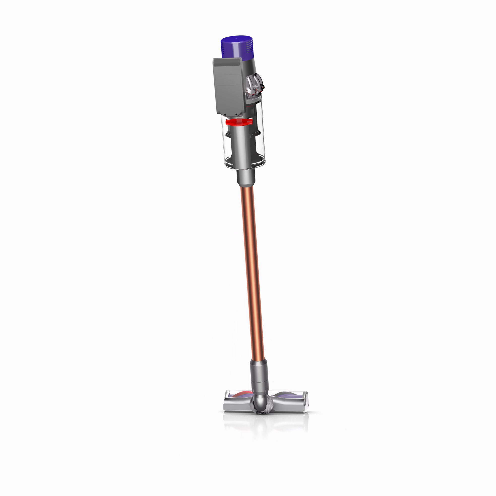 The motor, bin and cyclone are aligned, so air is drawn into the cyclones in a straight line – creating 20% more suction power than the Dyson V8™ vacuum cleaner.