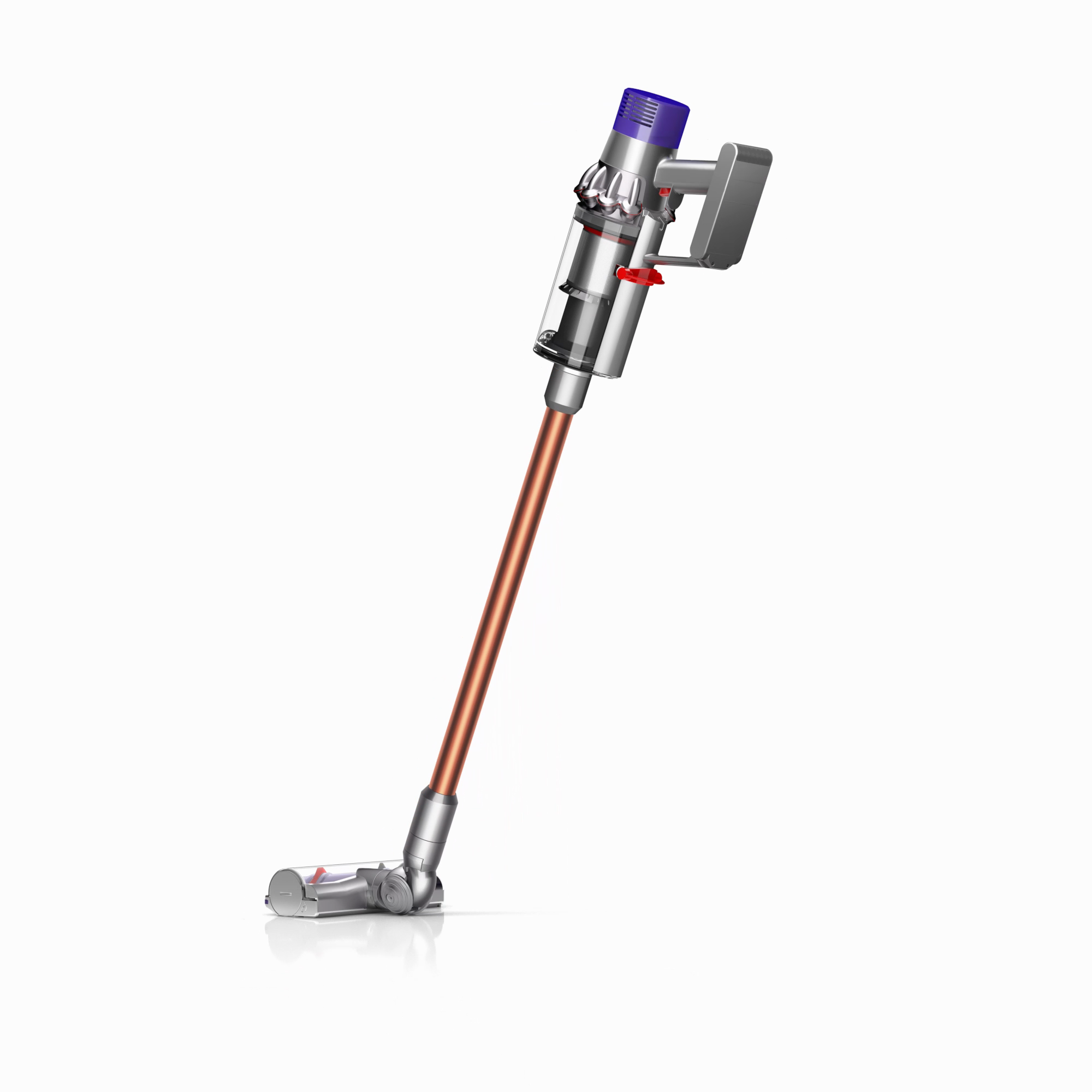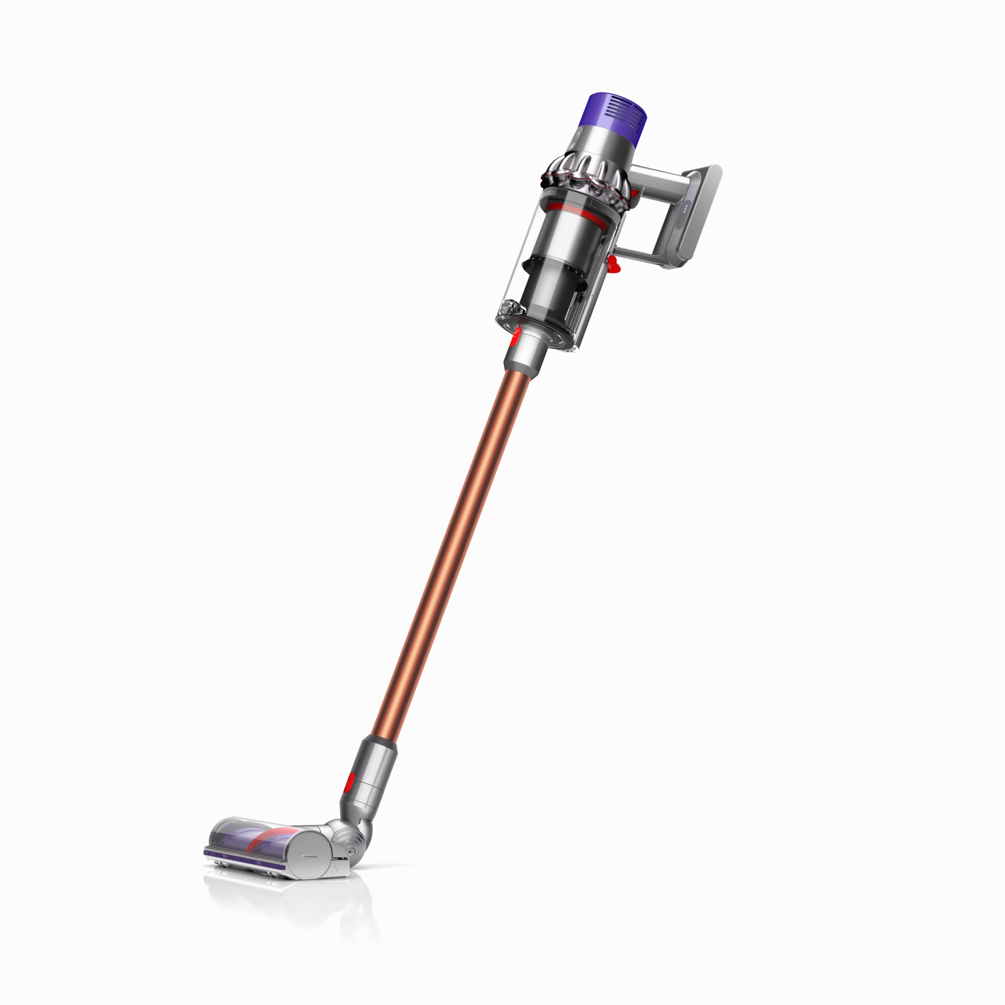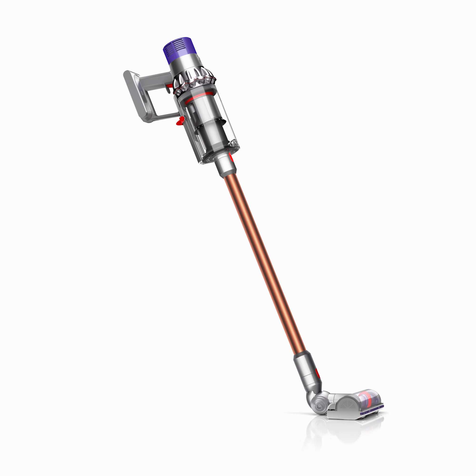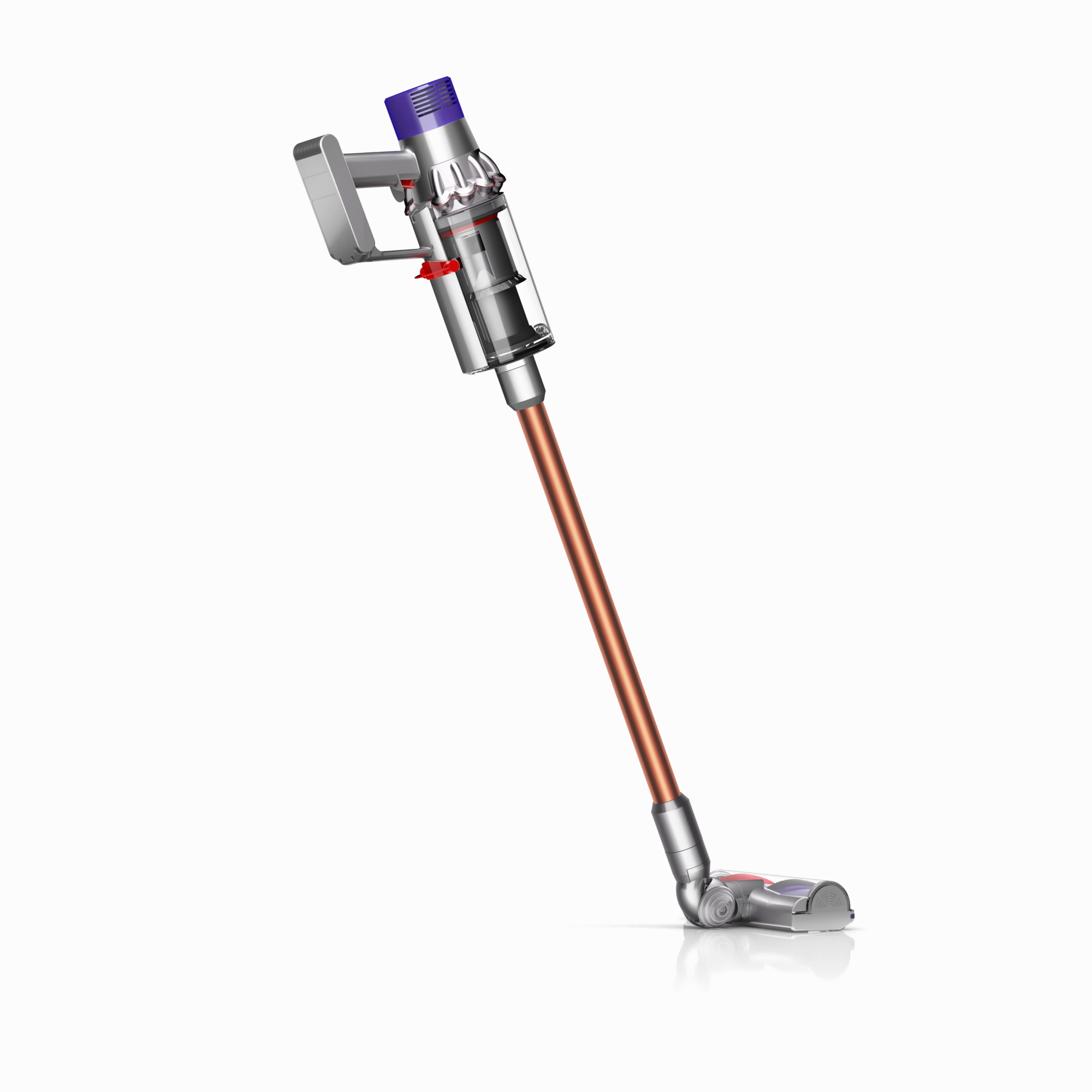 The motor, bin and cyclone are aligned, so air is drawn into the cyclones in a straight line – creating 20% more suction power than the Dyson V8™ vacuum cleaner.