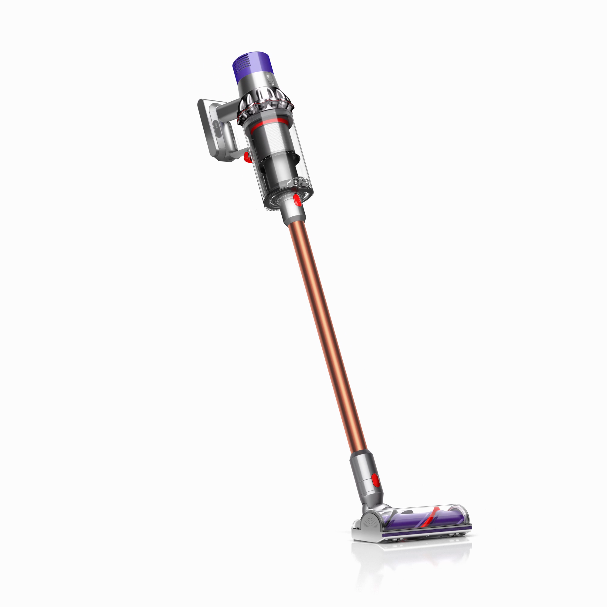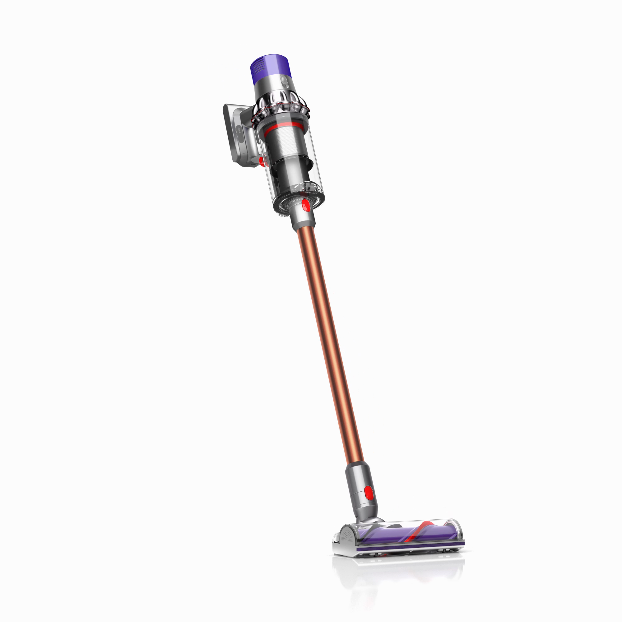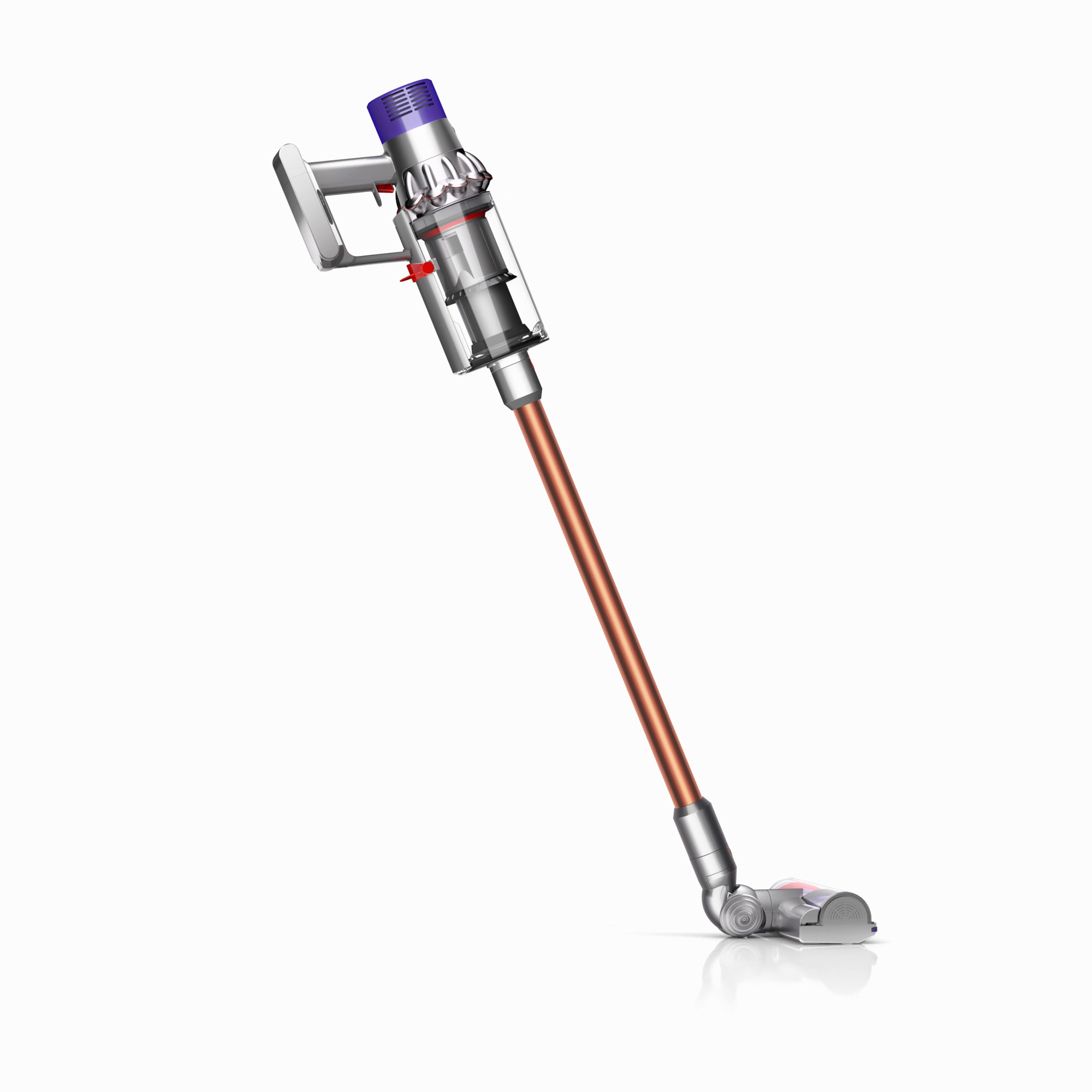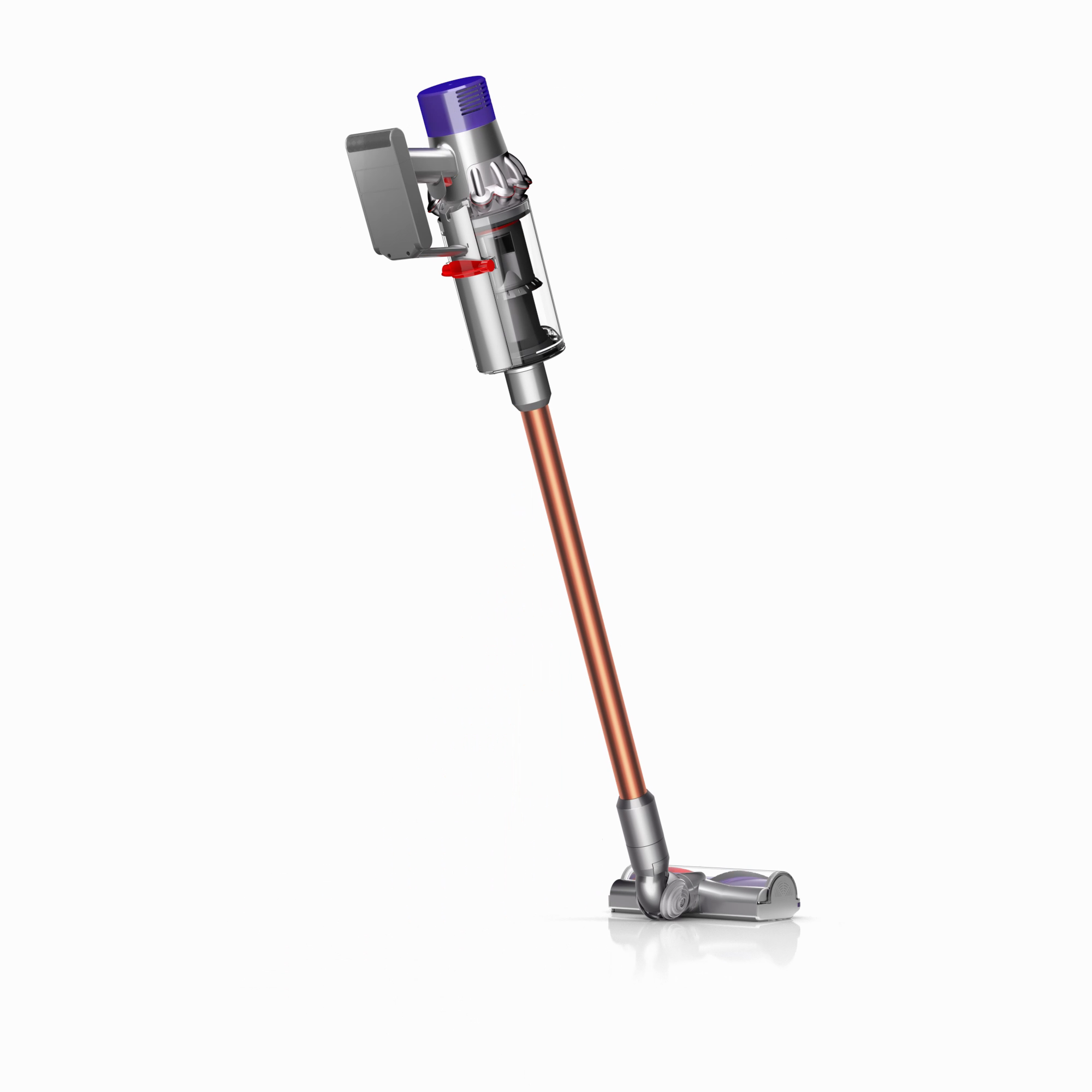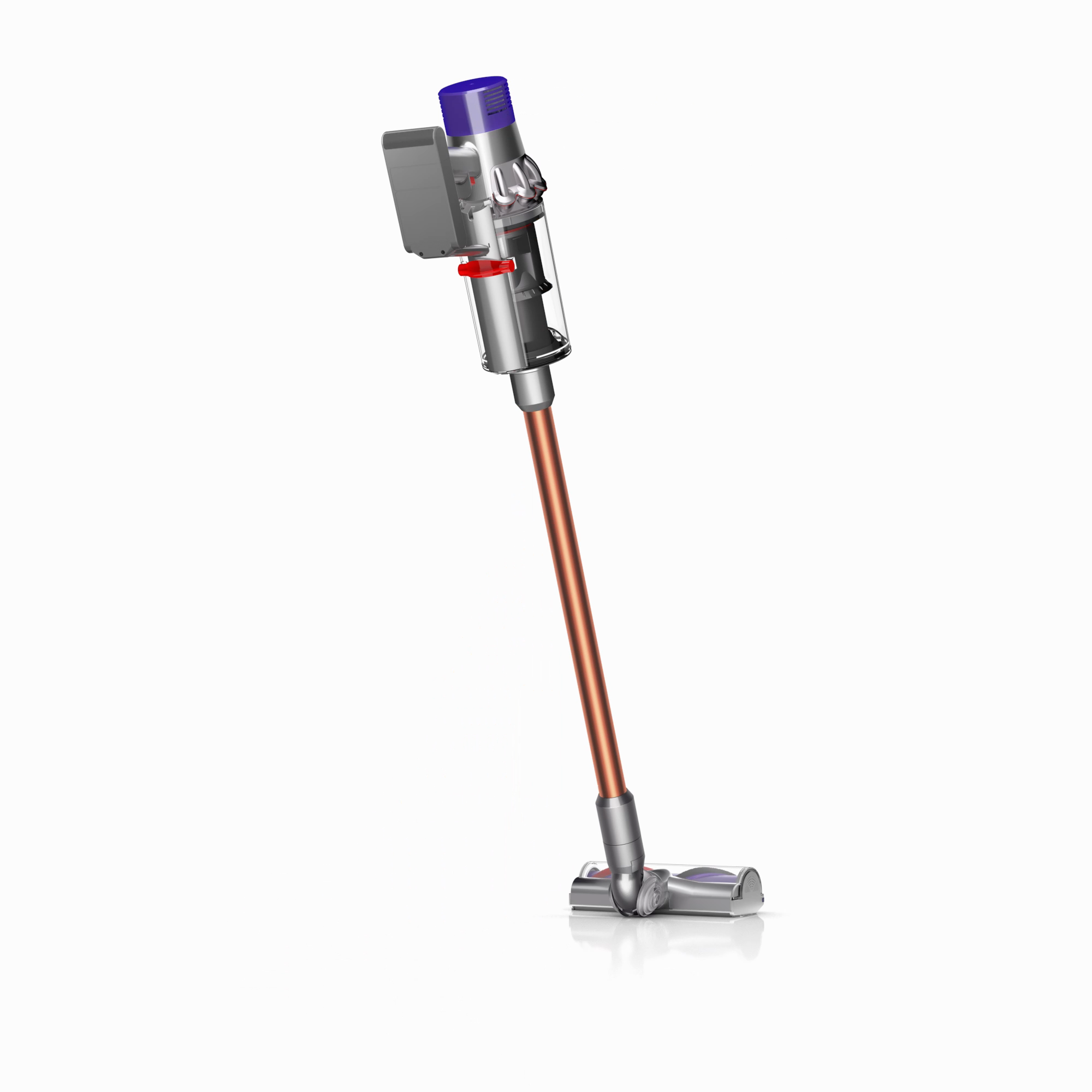 The motor, bin and cyclone are aligned, so air is drawn into the cyclones in a straight line – creating 20% more suction power than the Dyson V8™ vacuum cleaner.