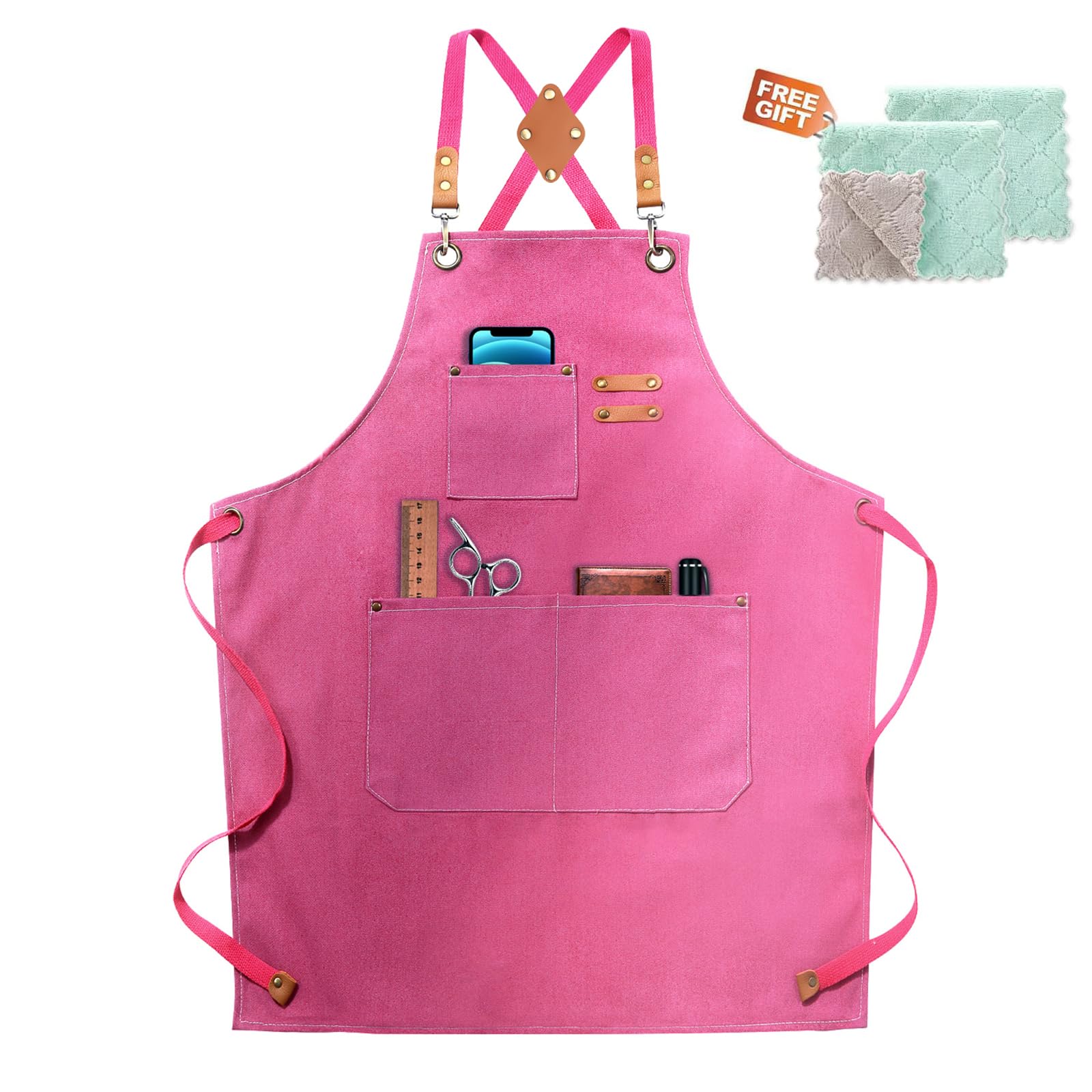 A stylish, comfortable and durable professional chef apron can quickly drive your emotions and devote yourself to cooking and working more happily. Yes, this is what we are doing. We will help you enjoy your life or work with this apron. Why choose our apron? ►Excellent Quality Durable Chef Apron Cotton canvas apron is handcrafted from 100% soft cotton, no smell, environment protection.Waterproof and stain resistant, comfortable to wear and smooth to the touch. ►Cross-Back Bib Apron—Providing a better protection Neck pain caused by inappropriate apron is really annoying.Not anymore. The Cross-Back Bib Apron distributes the additional carriage evenly to relieve the pressure on your neck which means that you can move freely without fear of rips or tears. ►Double stitched pockets and exquisite hardware buckle This apron is convenient to store the tools you need and can be quickly remove straps, while greatly increasing the aesthetics of the apron. ►Universal size apron—One Size Fits All Extra long straps (61 inch )with quick release buckle accommodates wide range of sizing M to XXL.Suitable for men and women. ►Suitable for various occasions Wide use as cooking apron, serving apron, nursing apron, baking apron, brewer apron, paint apron, BBQ apron, grilling apron, gardening apron, works apron, woodworking apron, welding apron, etc. √ DON'T HESITATE.We offer free return&get ,24 hours customer support,please no hesitate to add to cart right now! Tips: PLEASE take the straps off before washing. Wash apron separately from other clothes.