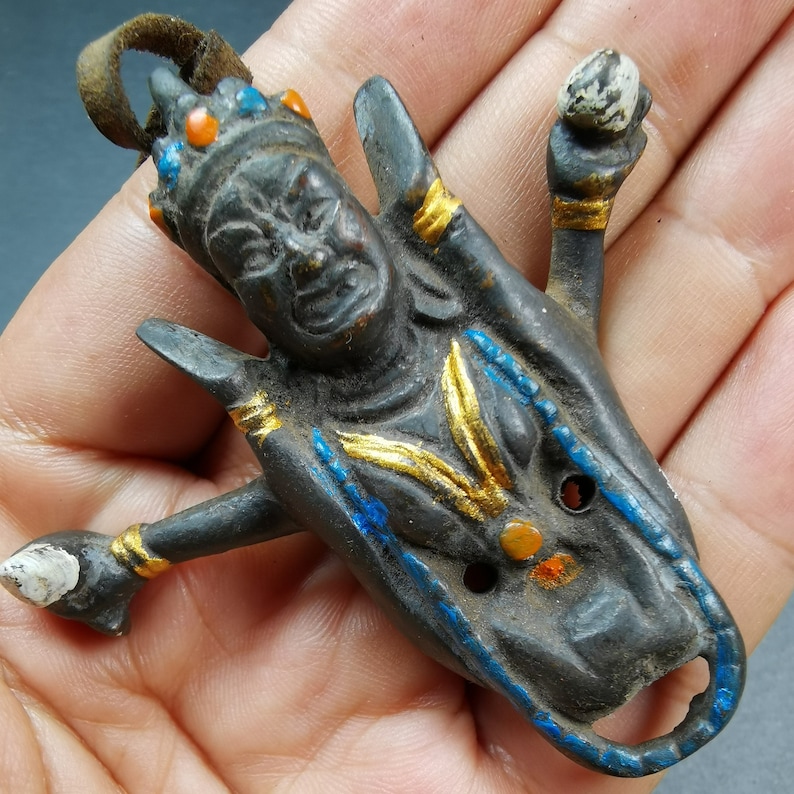 Most commonly she appears as the protector, alongside a guru and yidam (enlightened being). Although dakini figures appear in Hinduism and in the Boen tradition, dakini are particularly prevalent in Vajrayana Buddhism and have been particularly conceived in Tibetan Buddhism where the dakini, generally of volatile or wrathful temperament, act somewhat as a muse for spiritual practice.