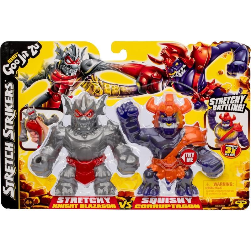 Description: Blazagon duels villain Corruptagon in the Heroes Of Goo Jit Zu: Stretch Strikers Versus Pack – Knight Blazagon Vs Gladiator Corruptagon! In this action-packed set, each warrior stretches up to three times their size with unique goo fillings for an epic battle! Squeeze and stretch to discover their abilities. Who will be victorious?
