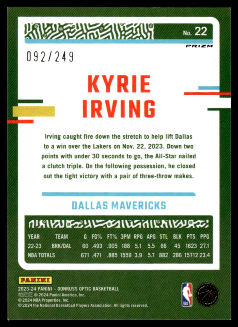 2023-24 Donruss Optic Scope Kyrie Irving 092/249 Dallas Mavericks #22