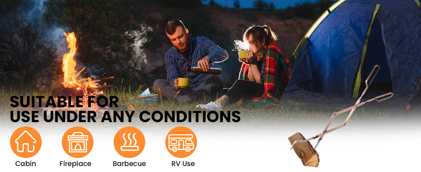 The Fireplace Tongs easily extend scissor action, Grab flaming pieces of irregular wood safely. Doesn't Slide Loosely. Even if the fireplace tongs incredibly long, it folds up for storage Doesn't not take up space.