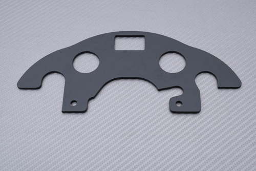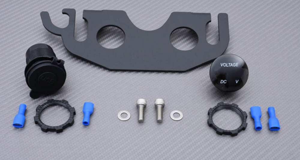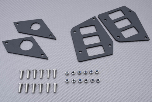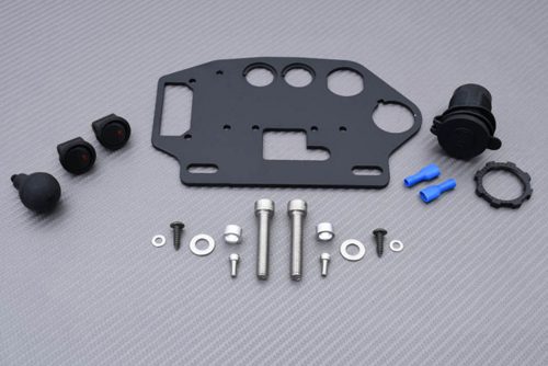 Wir bieten jetzt eine Platte an, die sich an die Form Ihrer Gabelbrücke oder Ihres Tachohalters anpasst und vorgebohrt ist, um die meisten auf dem Markt erhältlichen Stecker oder zusätzliche Lichter aufzunehmen.