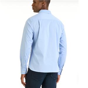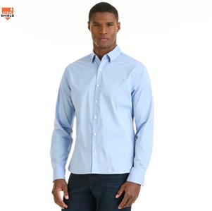 Long sleeve cronbie button-down shirt in slim fit is perfect to wear to work. This shirt features Stain Shield properties, so that spills bead on most fabrics, preventing stains before they start. Offered in a variety of colors, including black, grey, navy blue, and a light blue shade, this wrinkle-free shirt allows you to skip the iron when you’re getting ready for work in the morning. Stretch fabric is made of recycled poly fabrication. There’s a hidden button-down collar, and the never-tuck style length gives you the option to wear this shirt untucked for a great casual look.