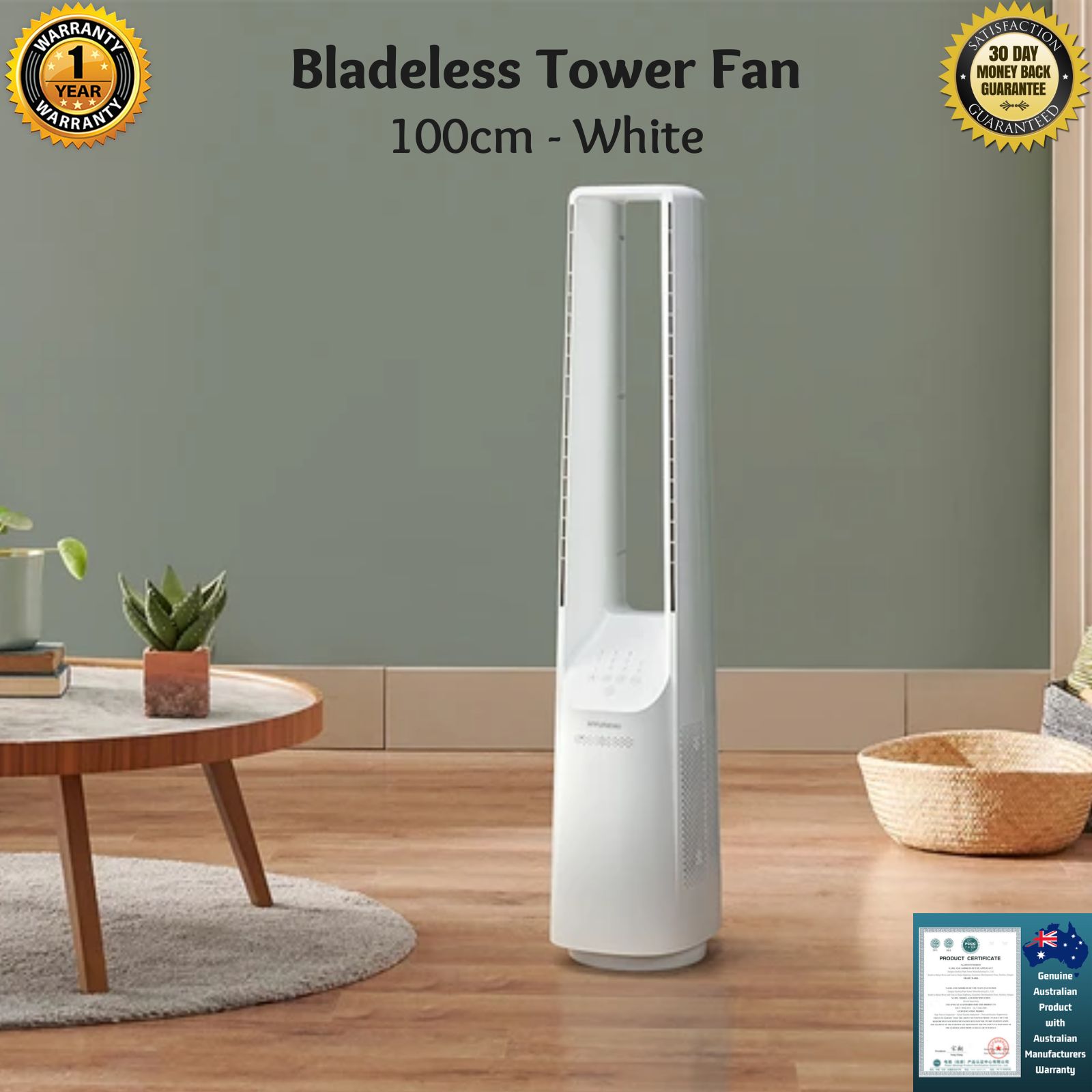 Hyundai 100cm Bladeless Tower Fan - Stay cool with the Hyundai 100cm Bladeless Tower Fan. Small yet powerful, it beats the heat outside, making any room in your home comfortable. Enjoy a pleasant breeze without sacrificing space. The Hyundai 100cm Bladeless Tower Fan is perfect for cooling small to medium-sized rooms. This fan is easy to use, with 3 modes that can help you save on energy bills. The compact design makes it easy to store when not in use and its bladeless technology ensures a safe environment for children and pets.