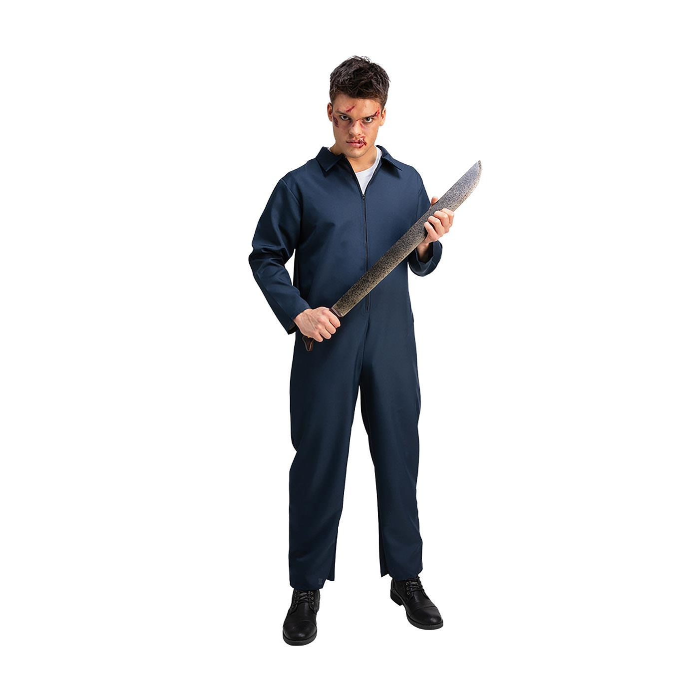 Description: Your gruesome serial killer Halloween costume needs an equally horrific weapon to complete the look. This huge plastic Machete will add realism to your Jason Voorhees, Friday 13th, Halloween, Walking Dead and more fancy dress characters. The giant fake machete knife is 77cm (30") long, with weathered silver steel blade and dark wood effect handle. High quality PU foam material gives this pretend machete an amazingly realistic effect.