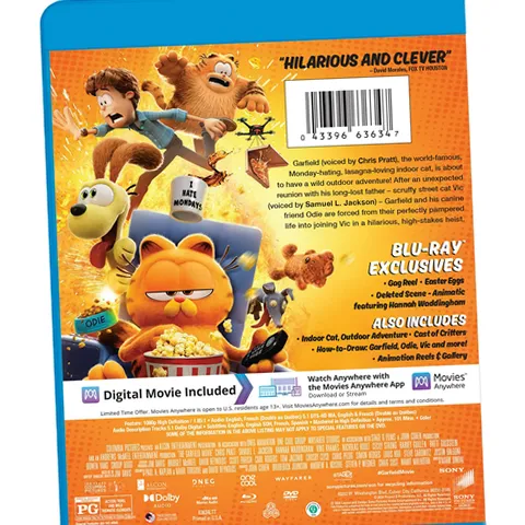 This new Garfield adventure brings the world-famous, Monday-hating, lasagna-loving indoor cat on a wild outdoor adventure. Garfield (voiced by Chris Pratt) unexpectedly reunites with his long-lost father – scruffy street cat Vic (voiced by Samuel L. Jackson). Garfield and his canine friend Odie are forced from their perfectly pampered life into joining Vic in a hilarious, high-stakes heist. Additional cast includes Ted Lasso’s Hannah Waddingham and Brett Goldstein, SNL’s Cecily Strong and Bowen Yang, as well as Ving Rhames, Nicholas Hoult, Harvey Guillen and Snoop Dog who plays a cat! The film serves up a perfect mix of franchise nostalgia and new elements - wherein we discover Garfield’s origin story/baby Garfield, meet Garfield’s father, and embark on a high-stakes heist. Sony, Family 100 mins