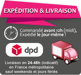 Nous expédions votre commande le jour même, si votre règlement nous parvient avant 12h00 sauf les samedi, dimanche et jours fériés. Nous ne livrons normalement que la France Métropolitaine.