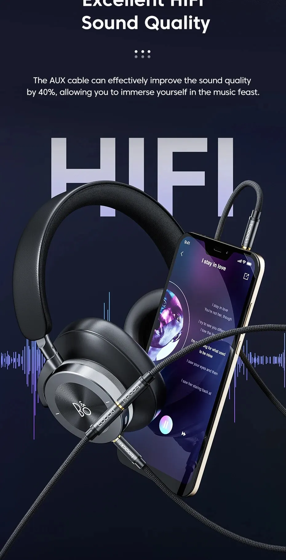 The AUX cord is covered with a high-strength braid wire,which has excellent durability