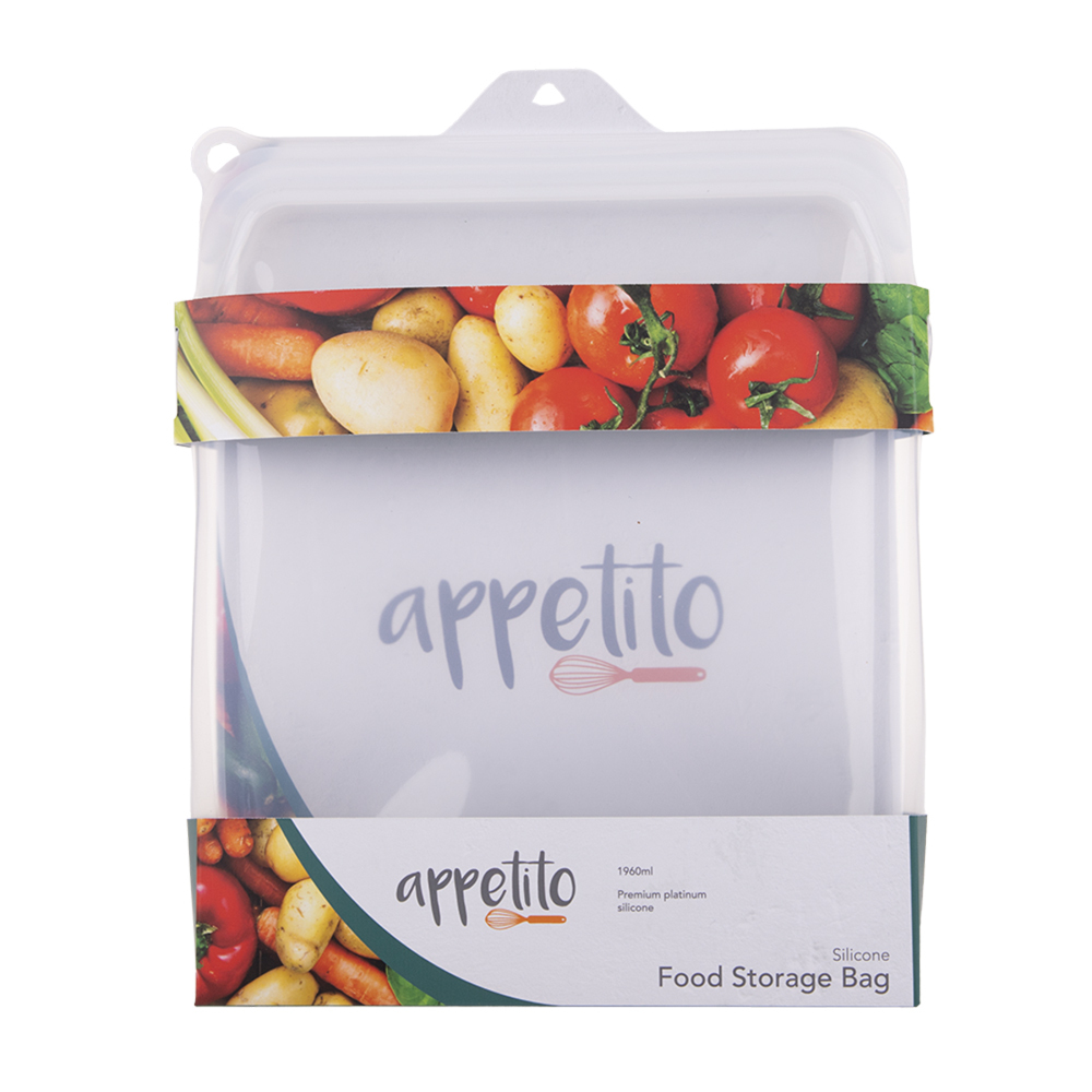 2 x Appetito Silicone Extra Large Food Storage Bag 1960ml White