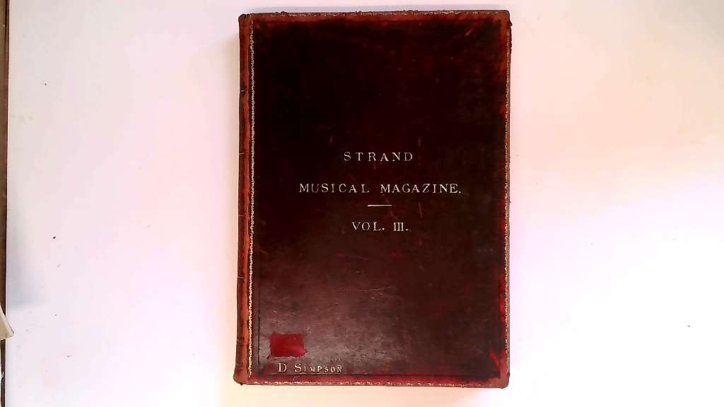 Item DescriptionTITLE: The Strand Musical Magazine.Vol.III January to June 1896. AUTHOR: E.Hatzfeld (Editor) PUBLISHER: George Newnes PUBLICATION DATE: 1896 BINDING: Hardcover PAGES: 428 CONDITION: Good ADDITIONAL INFORMATION: Voice/Flute/violin & Piano,Organ,Piano Solo along with articles on various musical topics.Leather binding. Music clear and unmarked. OUR REFERENCE: mon0001580122 |