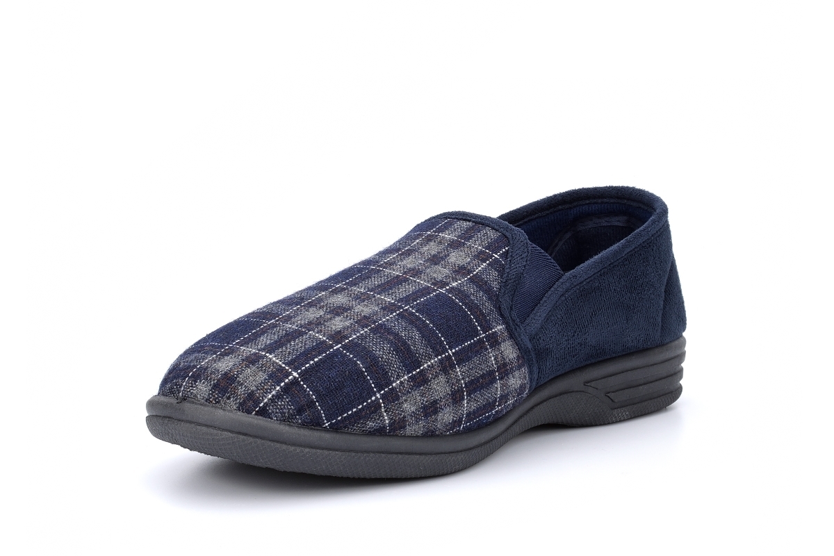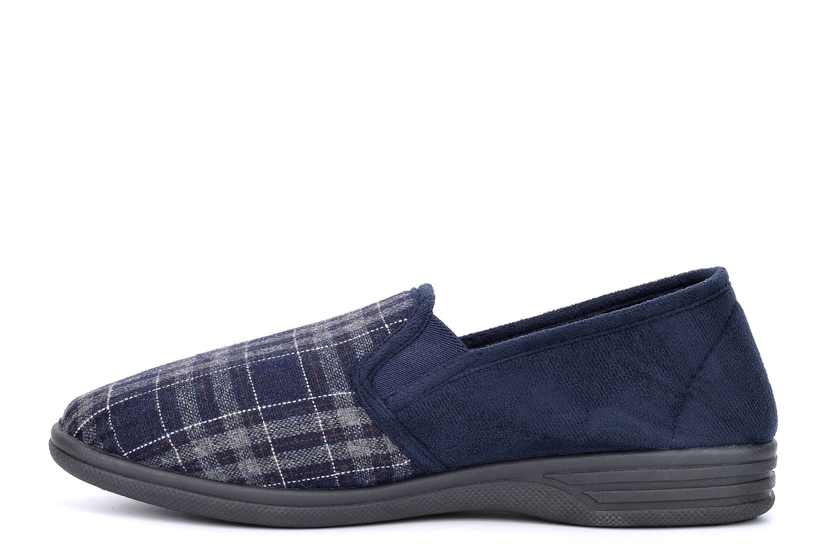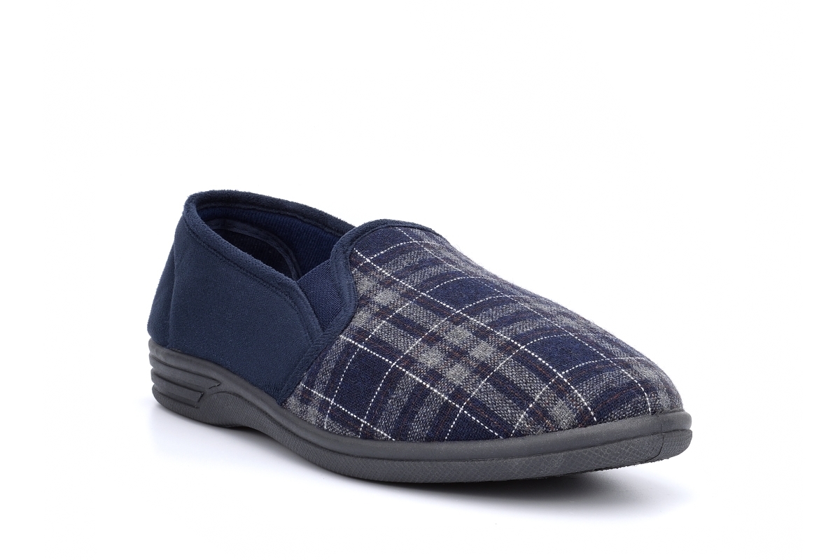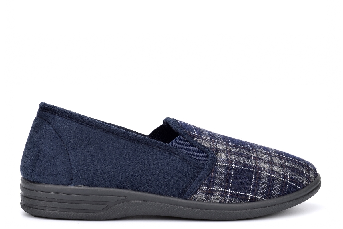 - Mens twin gusset slippers- Check textile upper- Textile lining- Flexible outsole- Slip on style