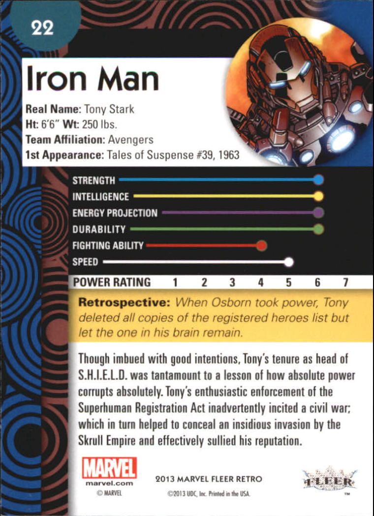 2013 Fleer Retro Marvel #22 Iron Man - NM-MT