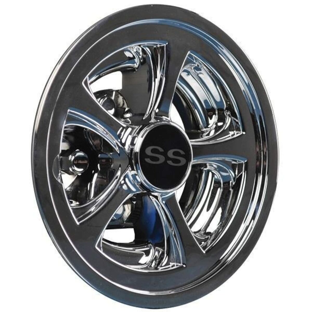 Set of Four 8" Black and Silver SS Golf Cart Wheel Covers / Hubcaps. Brand New and will fit any golf cart with standard 8" wheels. Fits all E-Z-GO, Club Car, and Yamaha, except they may not fit all EZ-GO RXV-2008 and up models.