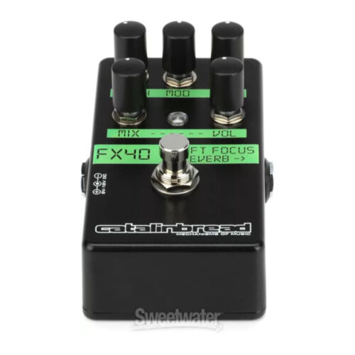 The Soft Focus patch was widely used in the ‘90s by early shoegaze bands, most notably Slowdive on Souvlaki. With its roots in that patch, the Catalinbread Soft Focus is intended to be an instant shoegaze button, while addressing the most glaring issues of the original unit: no mix control, a sub-par preamp, and a ghastly tone-sucking bypass signal. At its heart, the Soft Focus is a heavily modified plate reverb with adjustable time, which is subsequently split into three paths. One path contains a multi-voiced chorus modulator, another features a well-appointed octave-up mixed in with the reverb, and the third path leaves the reverb untouched. The Mod knob controls the rate of the chorus on path one, and the Symphony knob controls the level of the octave on path two. All controls are coupled to the tone of the reverb to give users an expansive playing field of sounds to discover and fine tune. The Soft Focus is not an exact recreation but was exhaustively compared with the FX500; the difference is that a fairly generic fixed-time digital delay is present on the Soft Focus patch. We found that leaving this feature intact ate into the circuit’s memory just a little too much for such little payoff, so we leave that addition to you and your favorite delay.