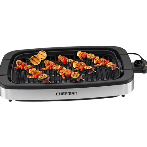 Chefman RJ23-SPG-SS-WM Smokeless Indoor Electric Grill, Adjustable Temperature Control, Dishwasher-Safe Parts