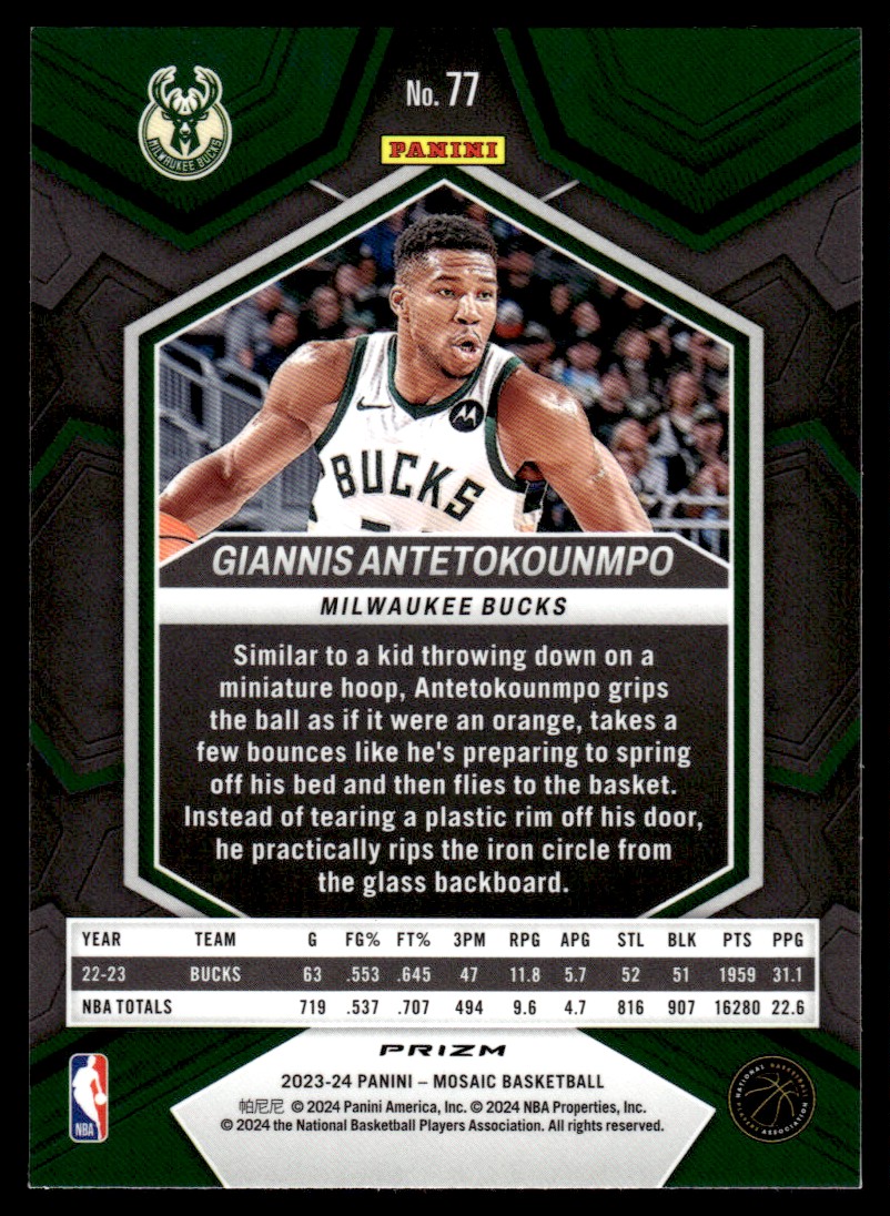 2023-24 Mosiac Mosiac Silver Prizm Giannis Antetokounmpo Milwaukee Bucks #77