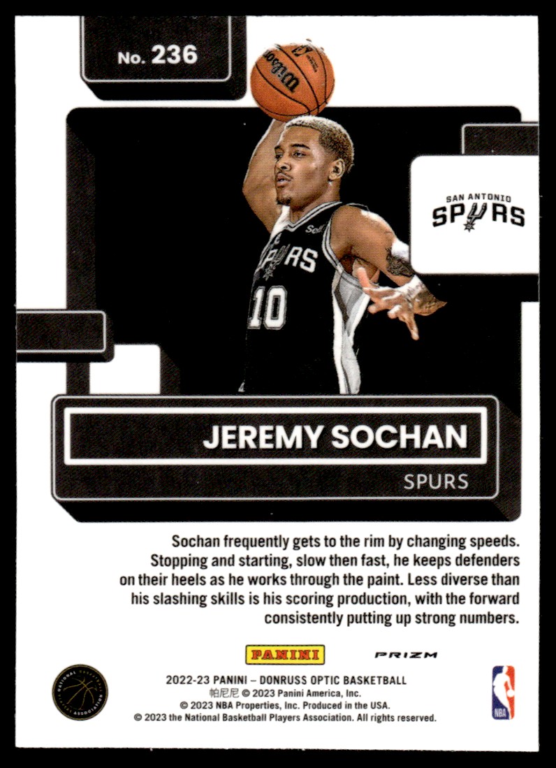 2022-23 Donruss Optic Holo Jeremy Sochan Rookie San Antonio Spurs #236