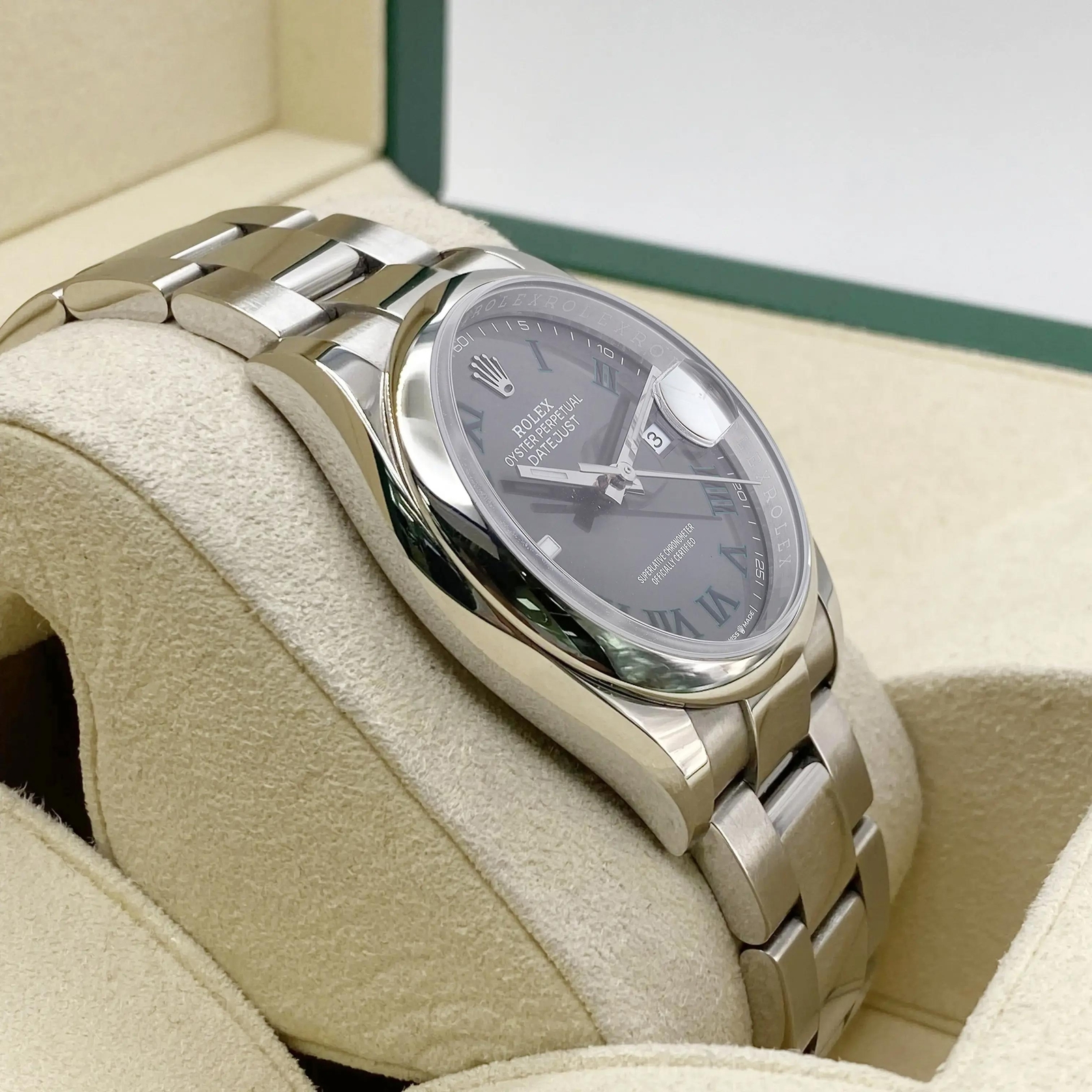 Rolex Datejust 36mm Steel Grey Wimbledon Dial Automatic Mens Watch 126200