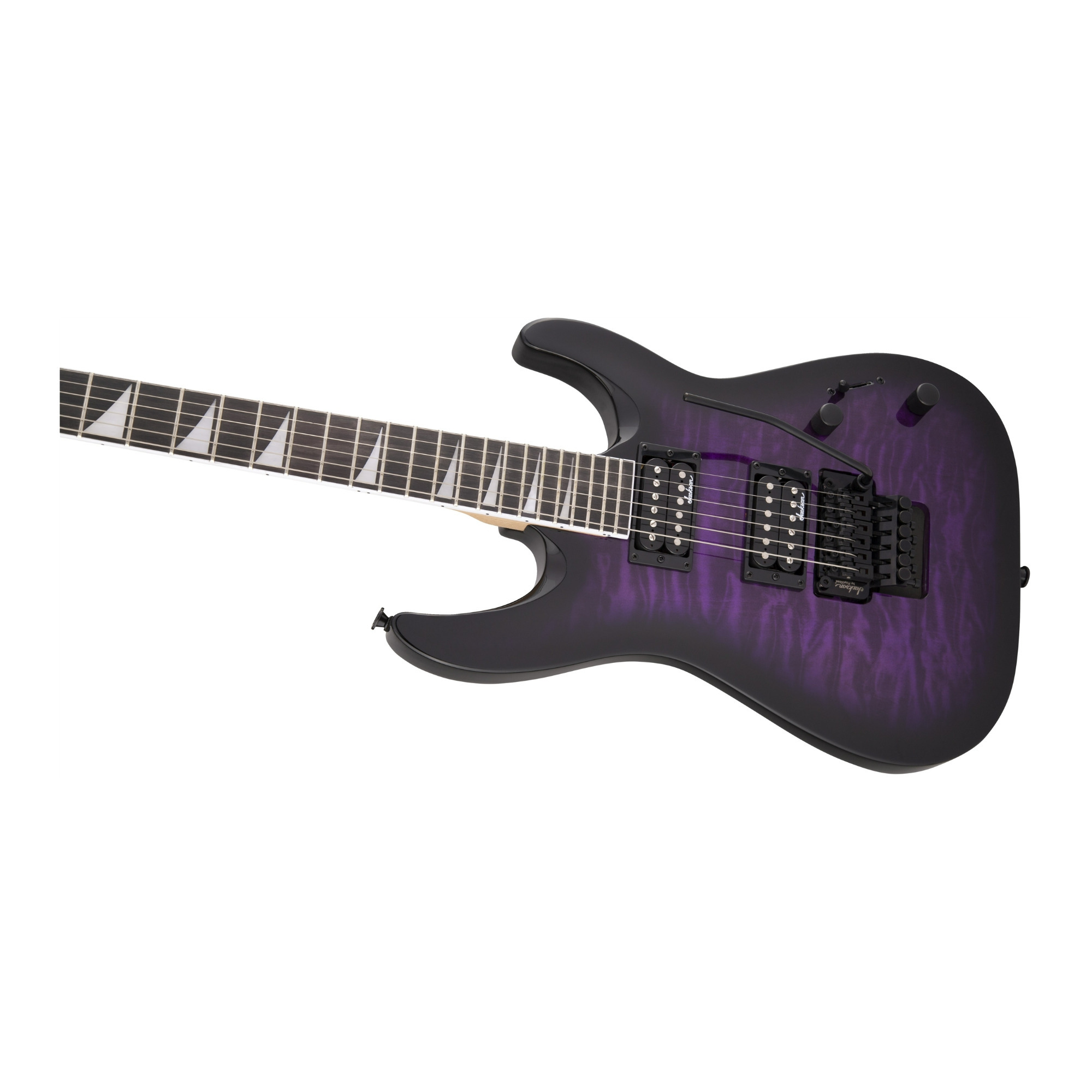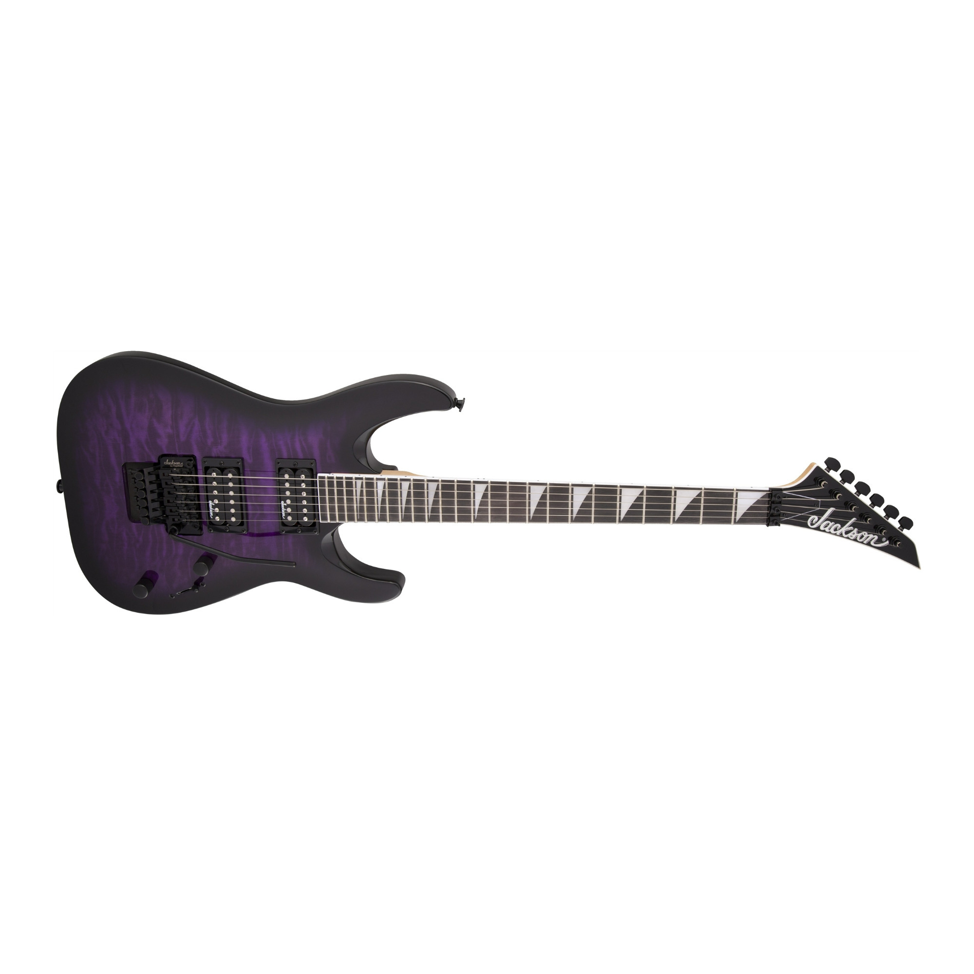 Sporting classic Jackson style, the JS32Q DKA is wrapped in Transparent Purple Burst finish with signature pointy black headstock and all-black hardware, including the standard strap buttons and sealed die-cast tuners.