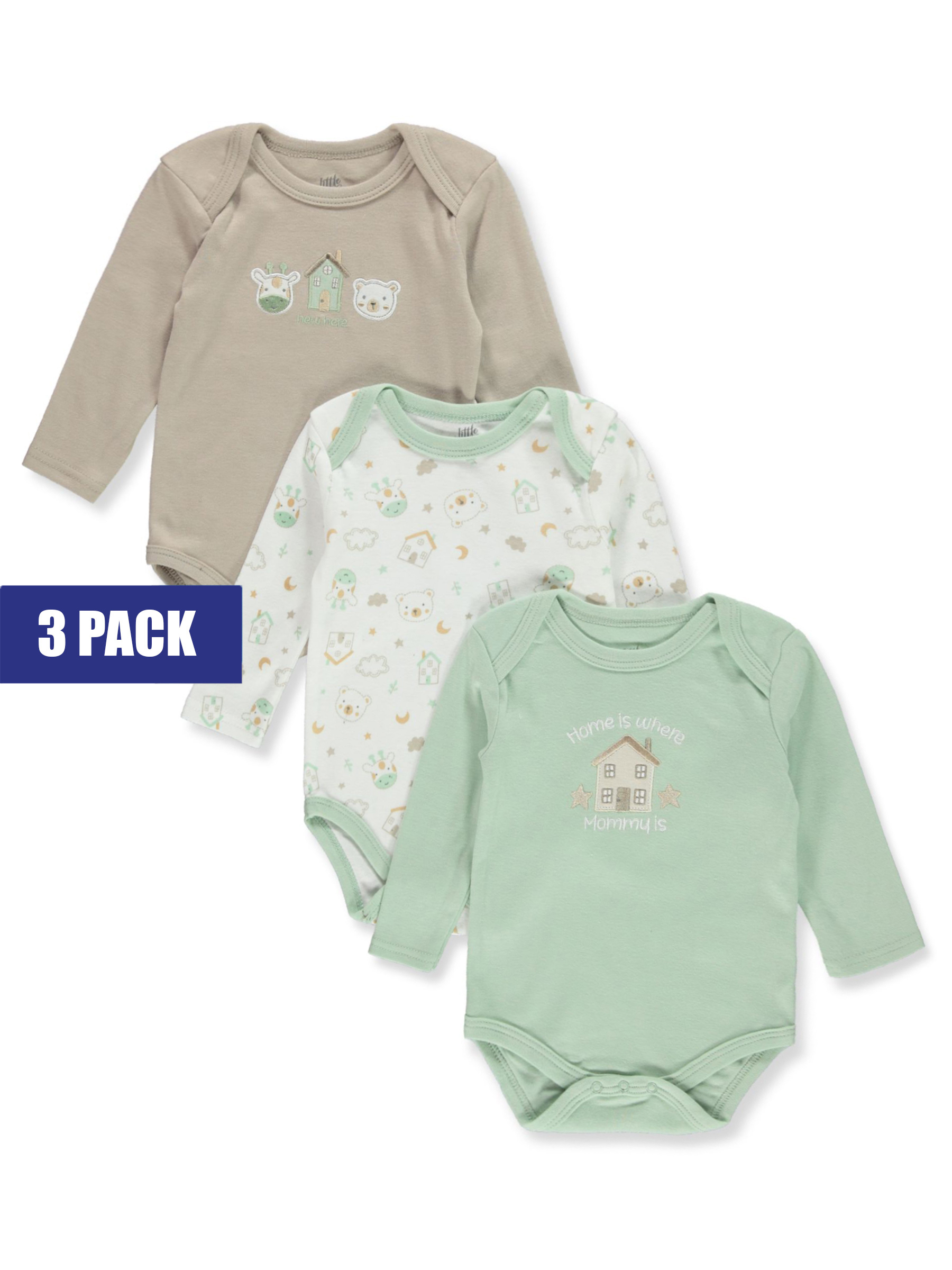 Stock up with this 3-pack from Little Joy! Little Joy 3-pack bodysuits Cotton construction Long-sleeved style Patterns / designs as shown 100% cotton Machine wash cold Made in China