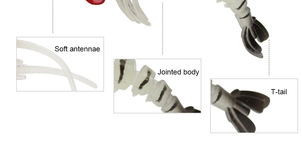 5. Jointed lure body enables vivid shrimp action.
