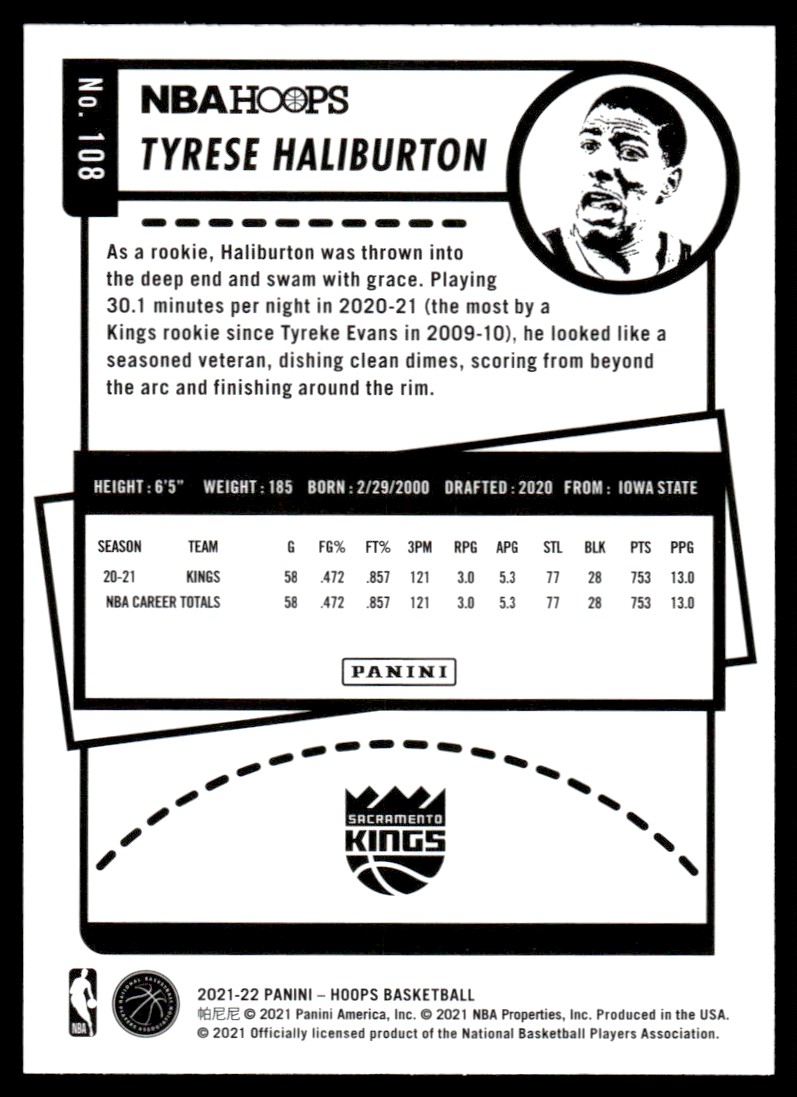 2021-22 Hoops Teal Explosion Tyrese Haliburton Sacramento Kings #108