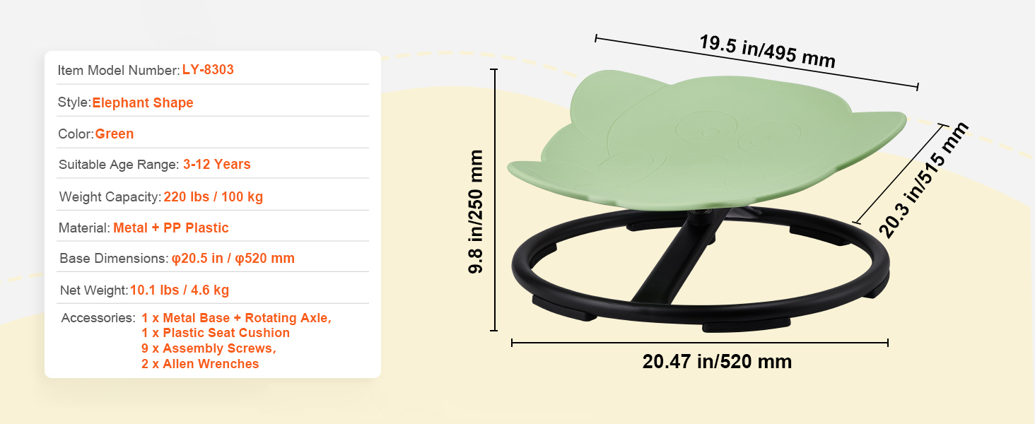 Secure Materials: We prioritize security with eco-friendly PP material, molded in one piece. The edges are carefully polished for smoothness, preventing injuries. The recessed sensory seat provides comfort, and the thickened edges offer a secure grip for kids while spinning.