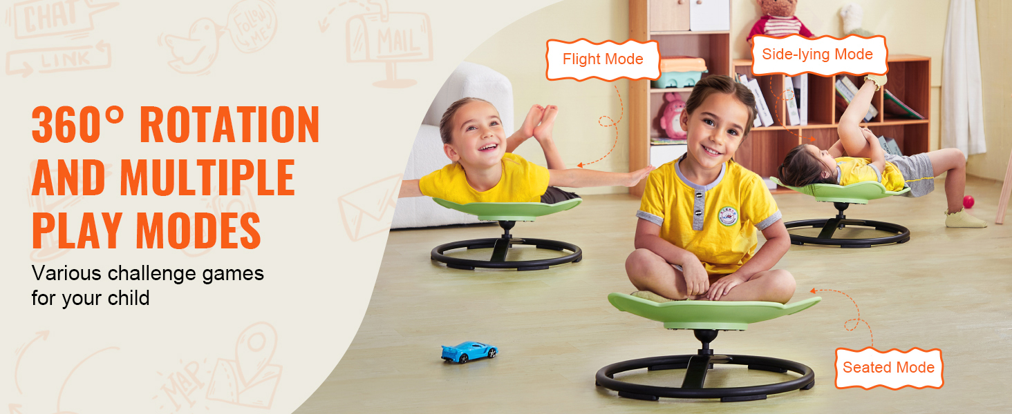 With 360° spinning and multiple play options, kids can sit, lie down, spin the sensory spinning chair, and create their own games. Parents can also join in for fun, interactive play, making it a great family toy.