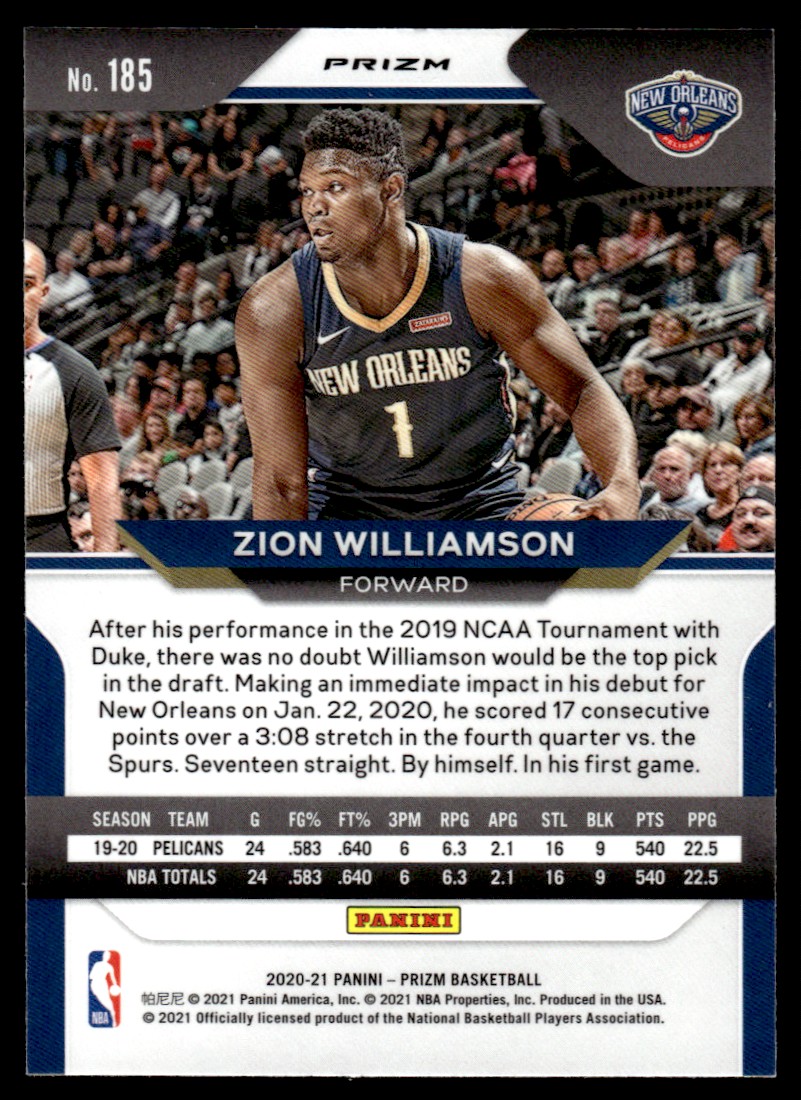 2021-22 Prizm Silver Prizm Zion Williamson New Orleans Pelicans #1