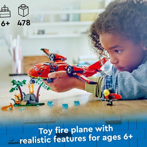 Here’s an impressive firefighter toy for kids ages 6 and up – the LEGO City Fire Rescue Plane (60413) complete with realistic features, including a waterdrop function and 2 water element launchers. The twin-engine airplane toy also has an opening rear cargo door and a dual cockpit, and includes pilot, extinguisher operator and jetpack firefighter minifigures, plus a wildfire scene for action-packed play. This emergency rescue plane toy for kids includes an easy to follow printed building guide and step-by-step 3D instructions in the LEGO Builder app. Here kids can zoom in and rotate to visualize models from all angles as they build. LEGO City Fire playsets deliver feature rich land, air and water toys for imaginative play without limits. Kids can add this toy fire plane to other sets (sold separately) from the LEGO City collection for even bigger adventures! Contains 478 pieces.