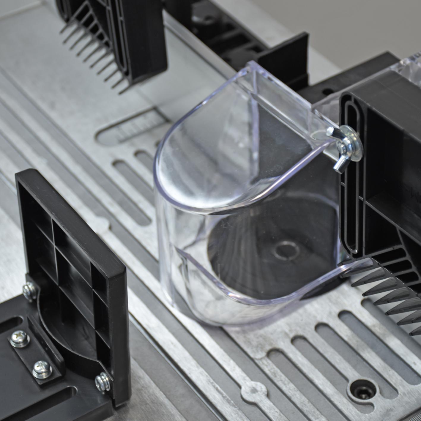 - Stabile Aluminiumanschläge mit Absaugvorrichtung