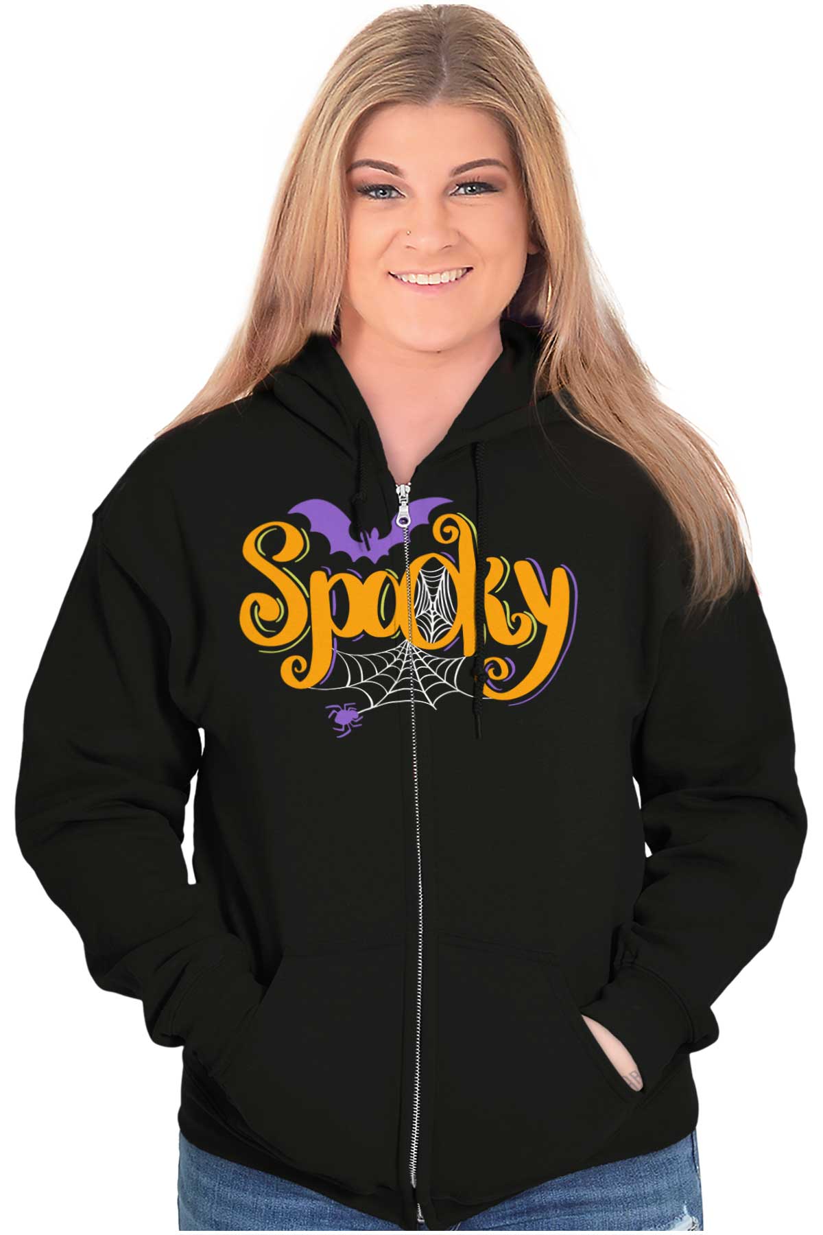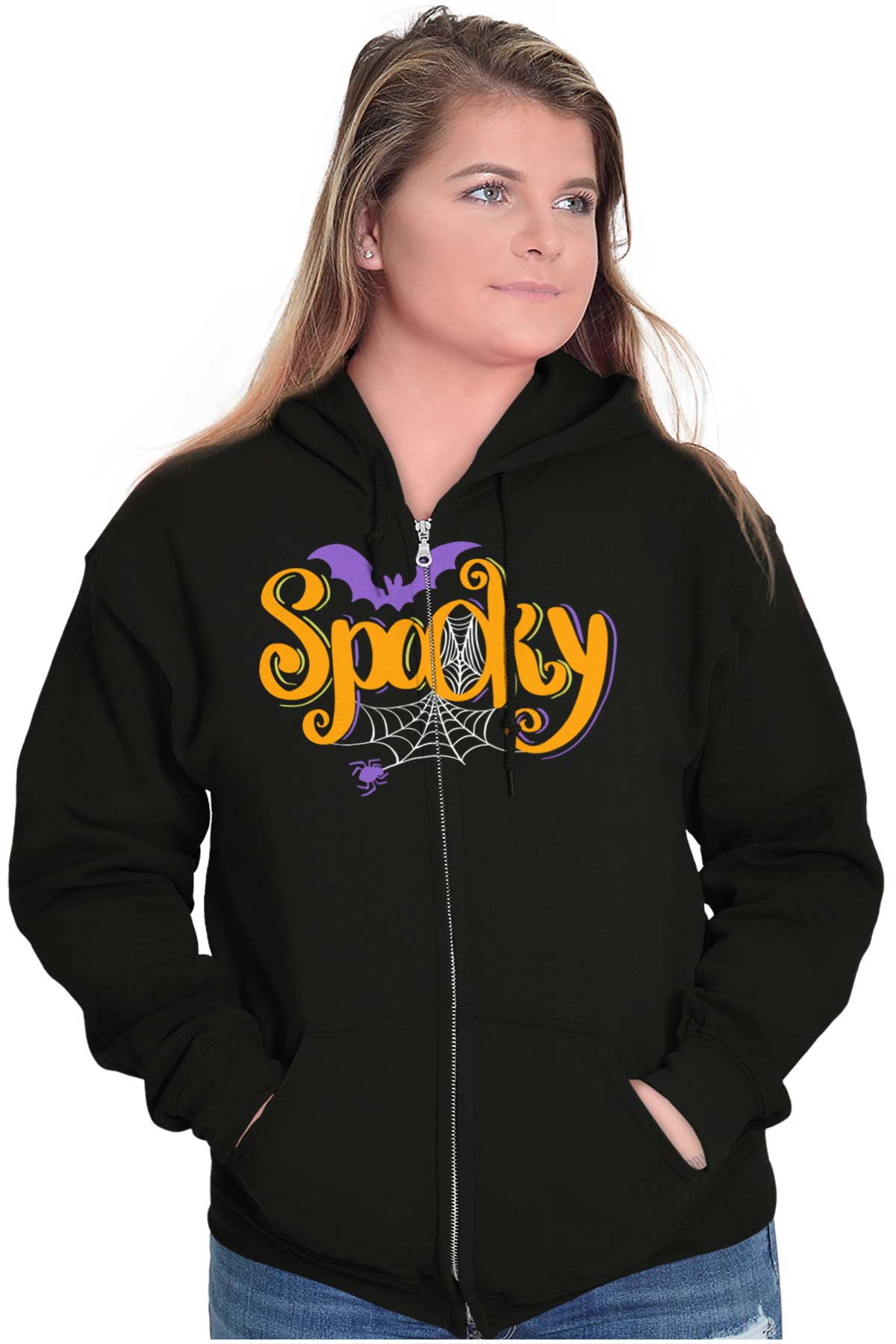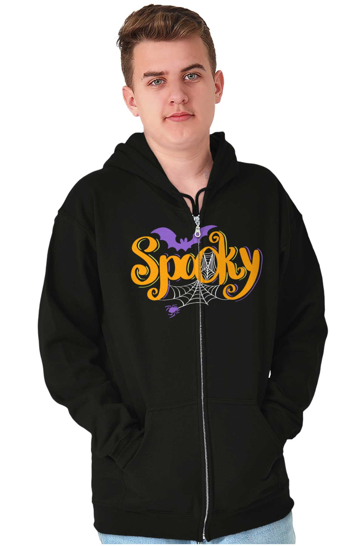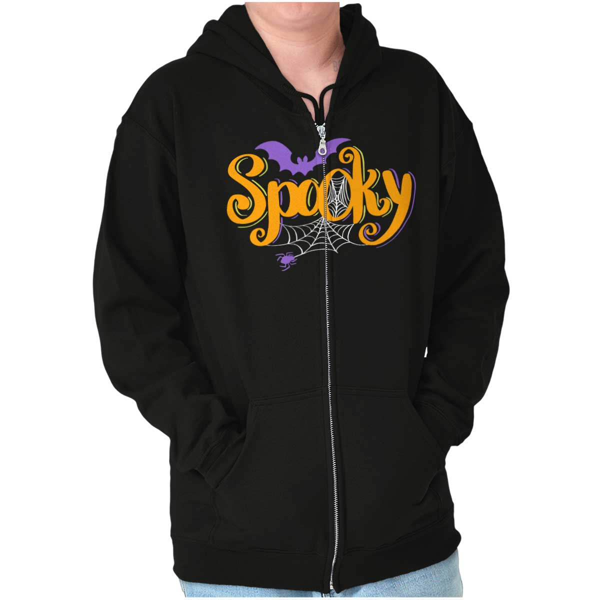 Zip up hooded sweatshirts are a must-have staple in any closet. The zip up hoodies from Brisco Brands are made with pre shrunk fleece knit for a perfect, comfortable fit. Take it on and off with ease with the metal zipper that has overlapped fabric across it for full front printing of the featured Halloween image. The unlined hood has a color matched drawstring for the perfect, cozy fit. Spacious pouch pockets on the from of the garment provide a space to carry essentials or keep your hands warm. The soft feel of this sweatshirt is perfect on chilly days whether you're outdoors or just hanging out on the couch. Wear it zippered up to stay cozy or unzipped to show off what you're wearing underneath! Reduced piling maintains the integrity of the garment as you wear it. The stylish novelty graphic makes this the perfect addition to your collection of favorite sweaters and sweatshirts! All of Brisco Brands shirts are professionally printed in the USA using contemporary technology.