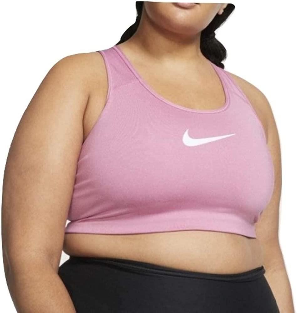 Nike ESF11075 Women's Swoosh Compression Bra Plus Size, Laser Pink/White, 1X