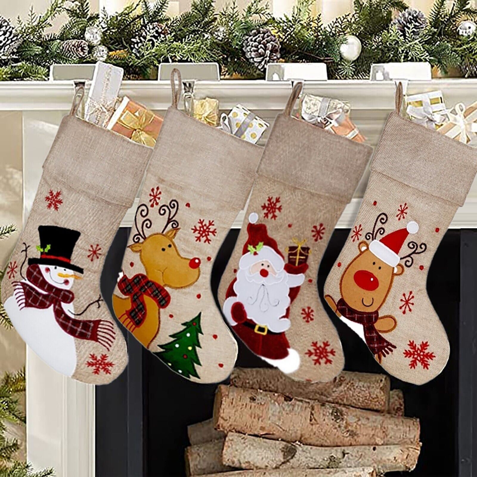 Christmas Stocking Extra Large Xmas Santa Sacks Christmas Stockings Santa Elf Rudolph Reindeer Snowman Red Velvet Plush Jute Santa Sack Gift Bags Large Xmas Decoration Jumbo Present Bag
