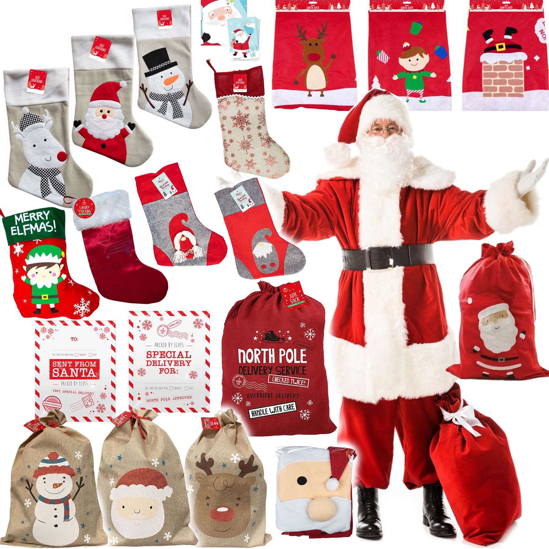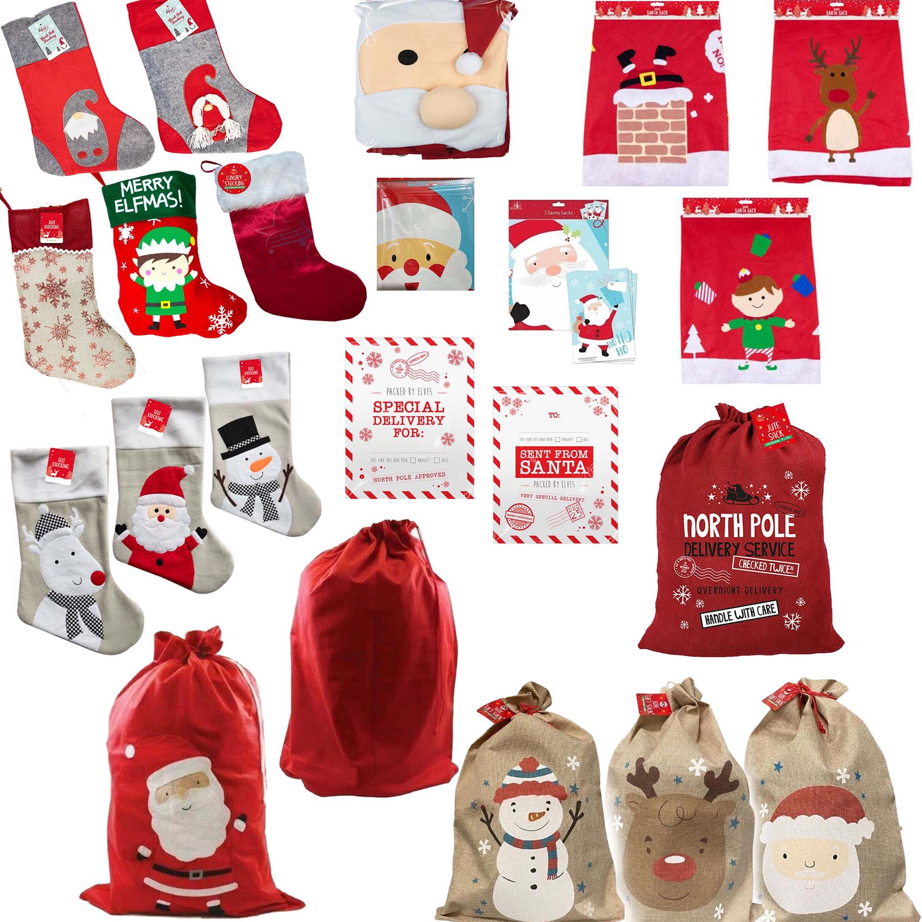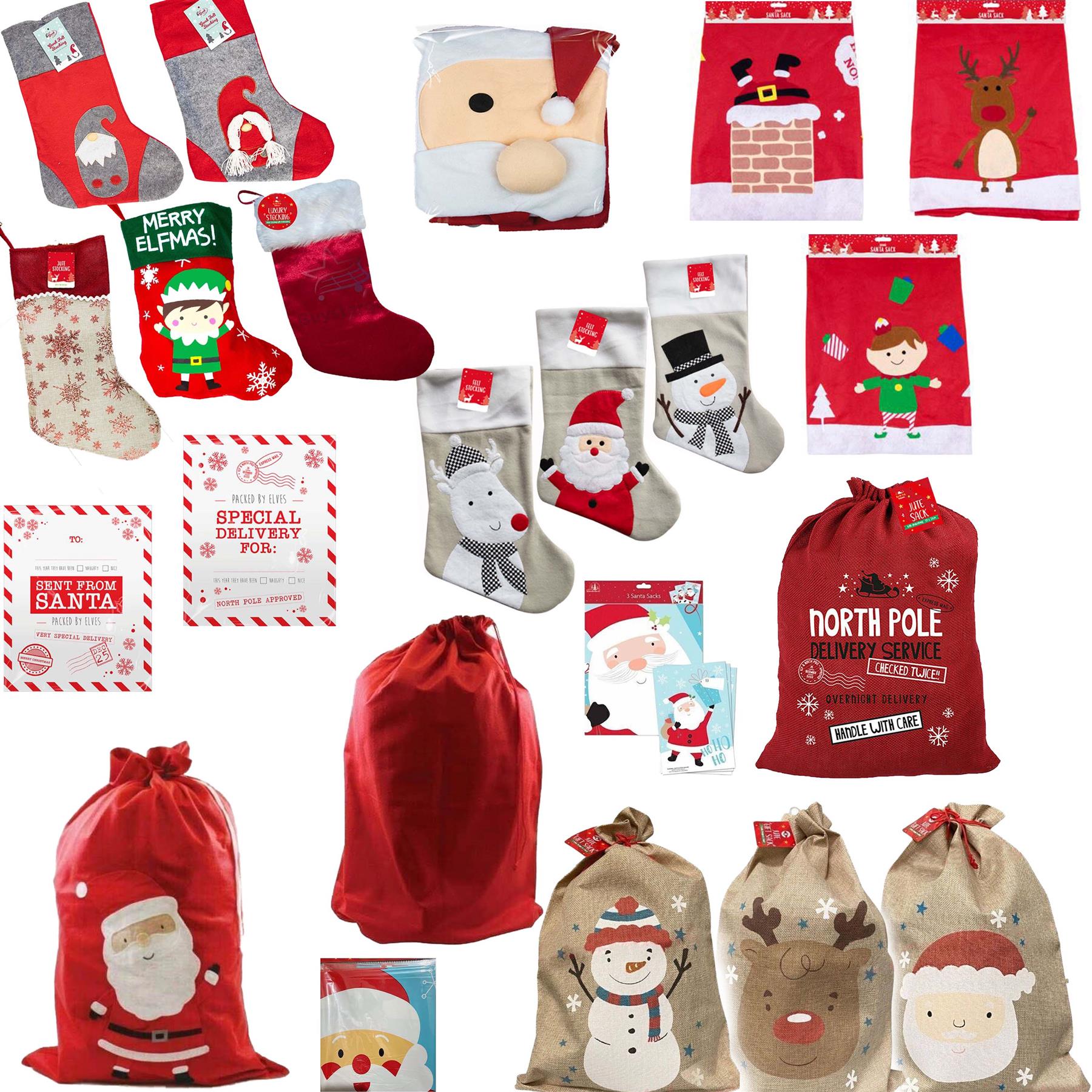 Celebrate the spirit of Christmas like never before with our exquisite collection of Christmas Stockings and Santa Sacks. Designed with love and crafted from luxurious materials such as plush, velvet, and jute, our festive treasures offer not just functionality, but also a stunning aesthetic that will enhance your holiday decor. Each piece boasts beautiful a design, ensuring your gifts are wrapped in style this holiday season. Imagine the delight on your children's faces as they wake up to find their favorite Santa Sack overflowing with gifts! With extra-large capacity, these sacks can hold a bounty of toys, games, and surprises, making every Christmas morning magical. Designed with practicality in mind, most of our sacks feature an easy-to-use drawstring closure (please check images), allowing little hands to access their treasures with ease. Safety is our priority, and our products are made from high-quality, non-toxic materials. Built to last, they feature strong stitching that can withstand the excitement of the holidays, ensuring your stockings and sacks are ready for many festive seasons to come. The spacious design not only accommodates large items but also helps save space under the tree, keeping your holiday setup neat and organized. Whether you're looking for the perfect addition to your Christmas decor or a unique gift for loved ones, our Christmas stockings, luxury fabric or plastic Santa sacks are versatile enough for all occasions. Ideal for holiday parties, family gatherings, or simply to spread cheer, these festive accessories are sure to be cherished for years. Make this Christmas one to remember by selecting from our delightful range of designs that suit everyone’s style. Don't wait for the holiday rush—grab your Christmas Stocking or Santa Sack today and experience the joy of gifting like never before! Let the magic of Christmas unfold as you fill them with love, laughter, and memories.