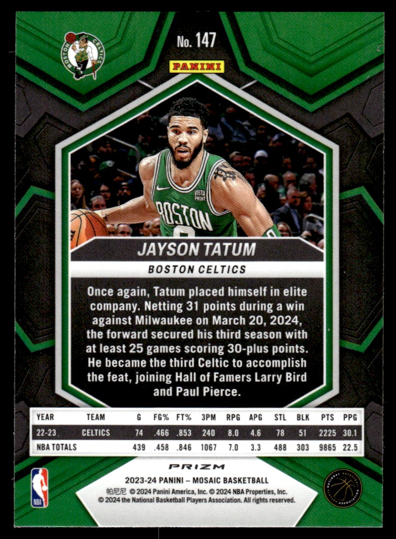 2023-24 Panini Mosaic Silver Prizm Jayson Tatum Boston Celtics #147