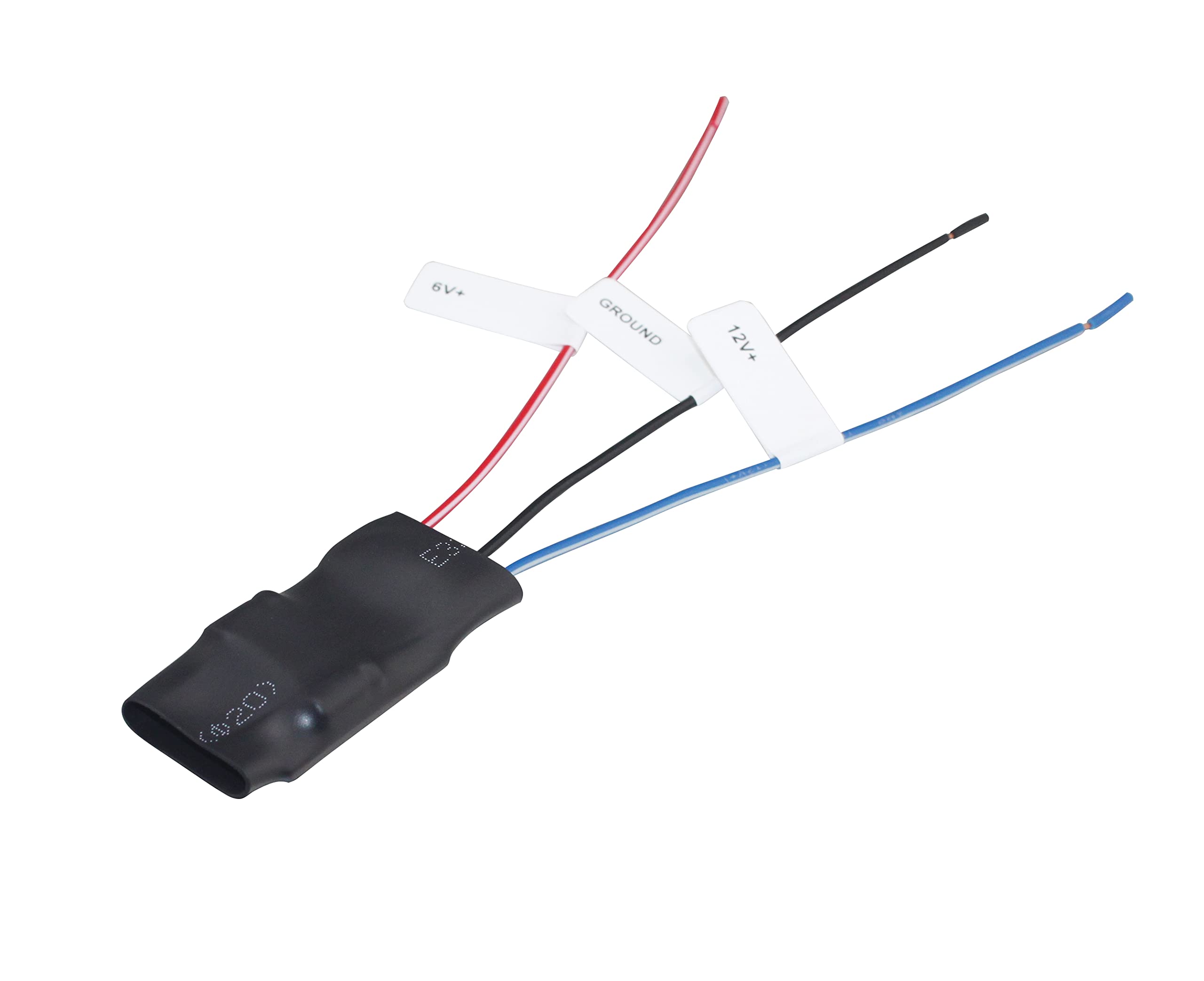 Converts 12-volts DC to 6-volts DC to provide proper voltage for a 6-volt factory backup camera.