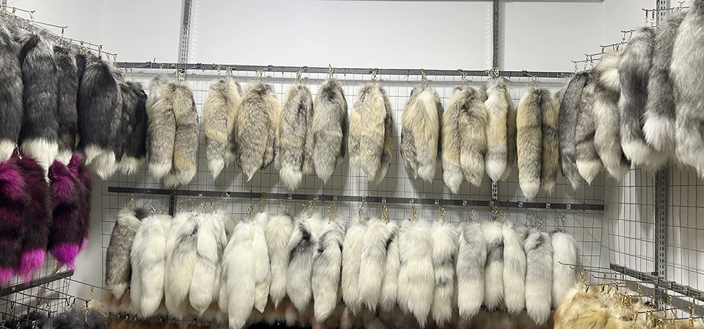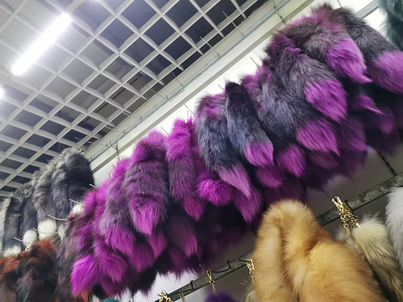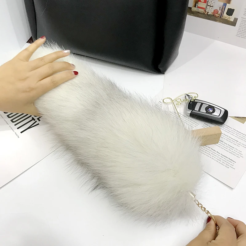 Women's Real Farm Fox Fur Fluffy Slippers Furry Slides Outdoor Flat Plush Shoes