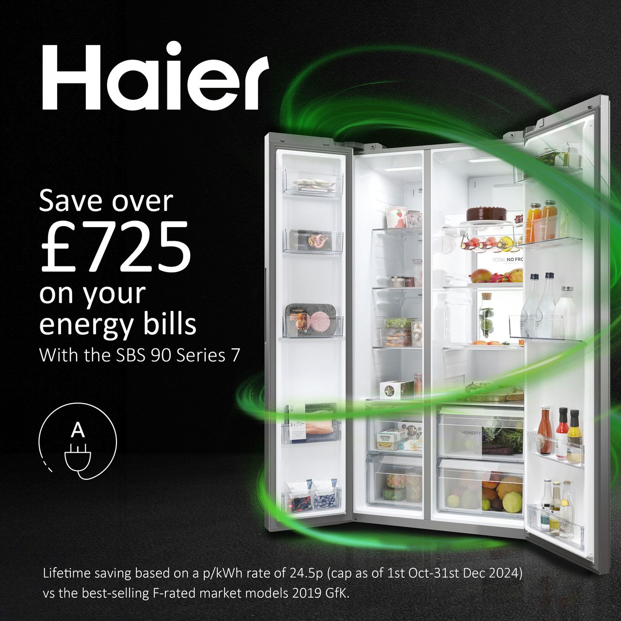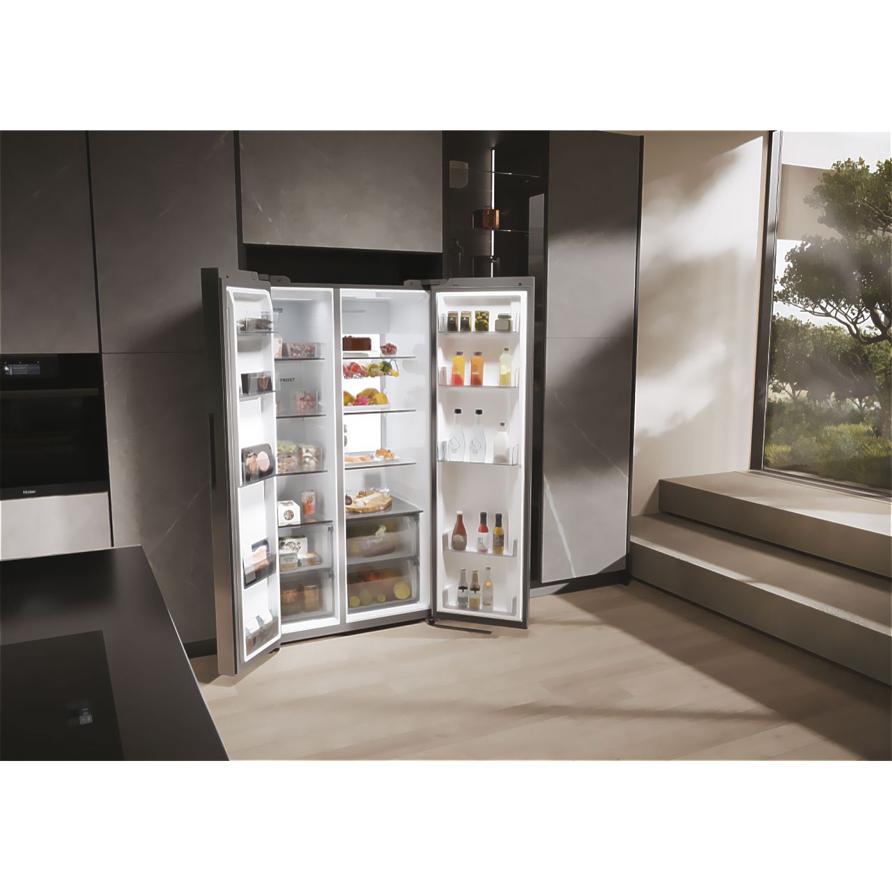 Haier HSW79F18ANMM SBS 90 Series 7 91cm American Fridge Freezer Silver A Rated